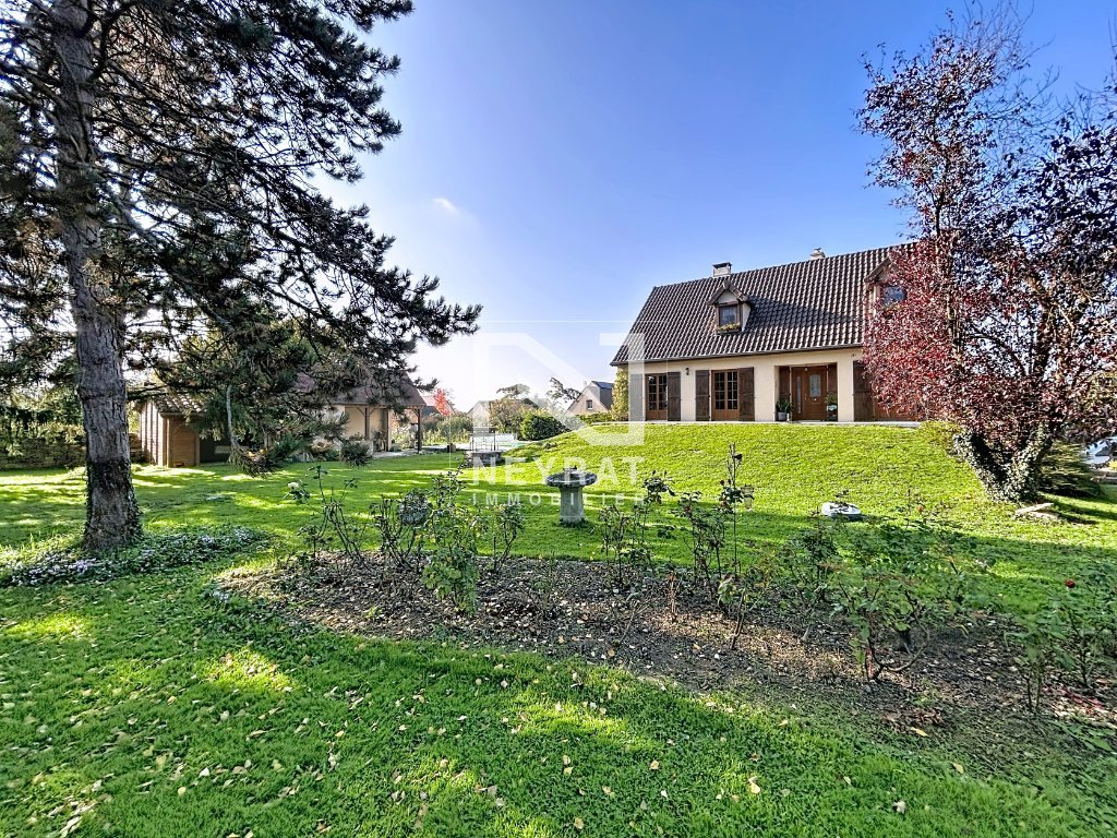 Maison élevée sur sous-sol aménagé avec piscine et grand terrain