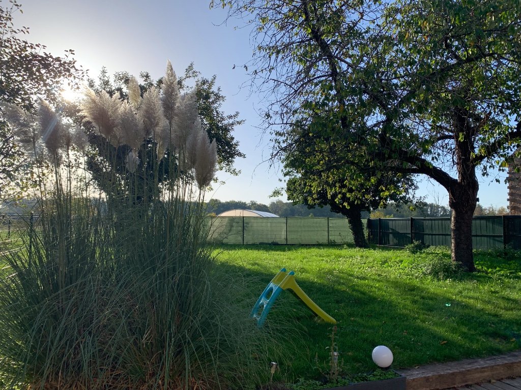 Le jardin à l'arrière est clos et arboré, avec une vue dégagée.
