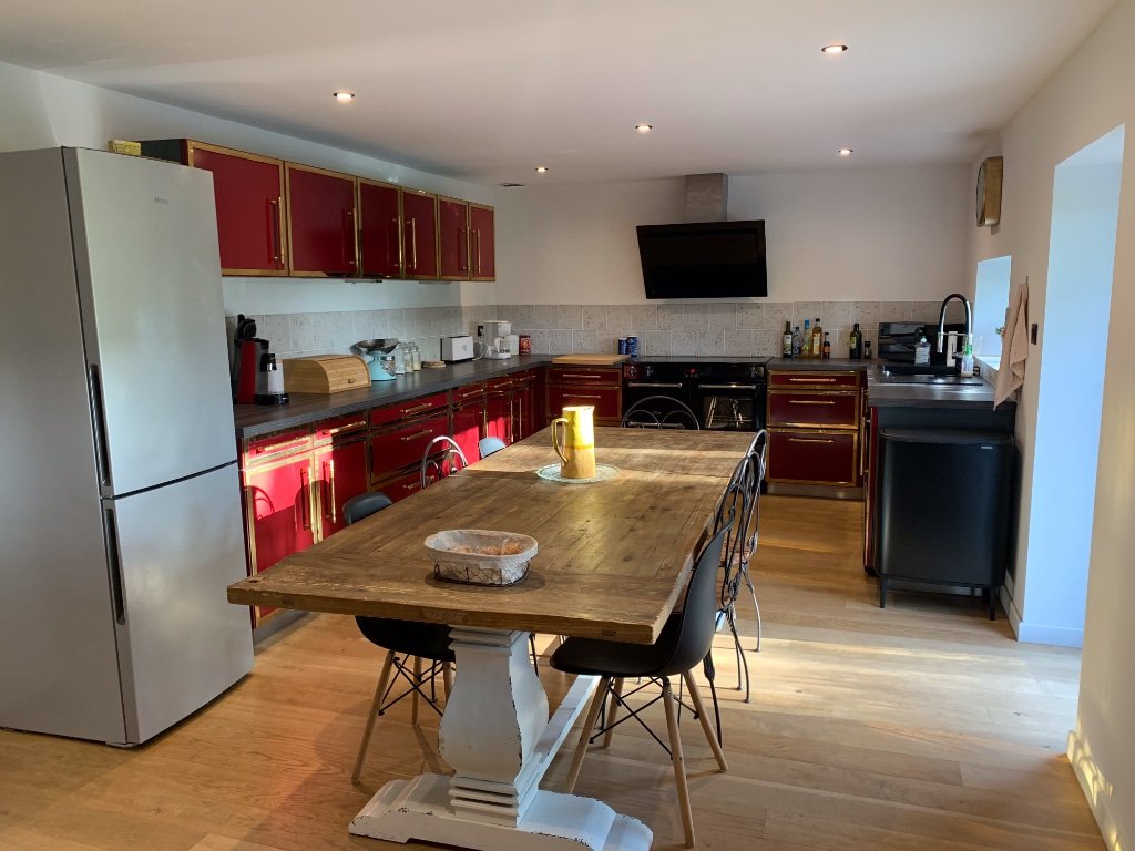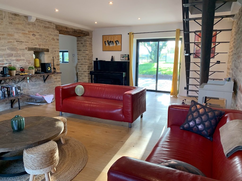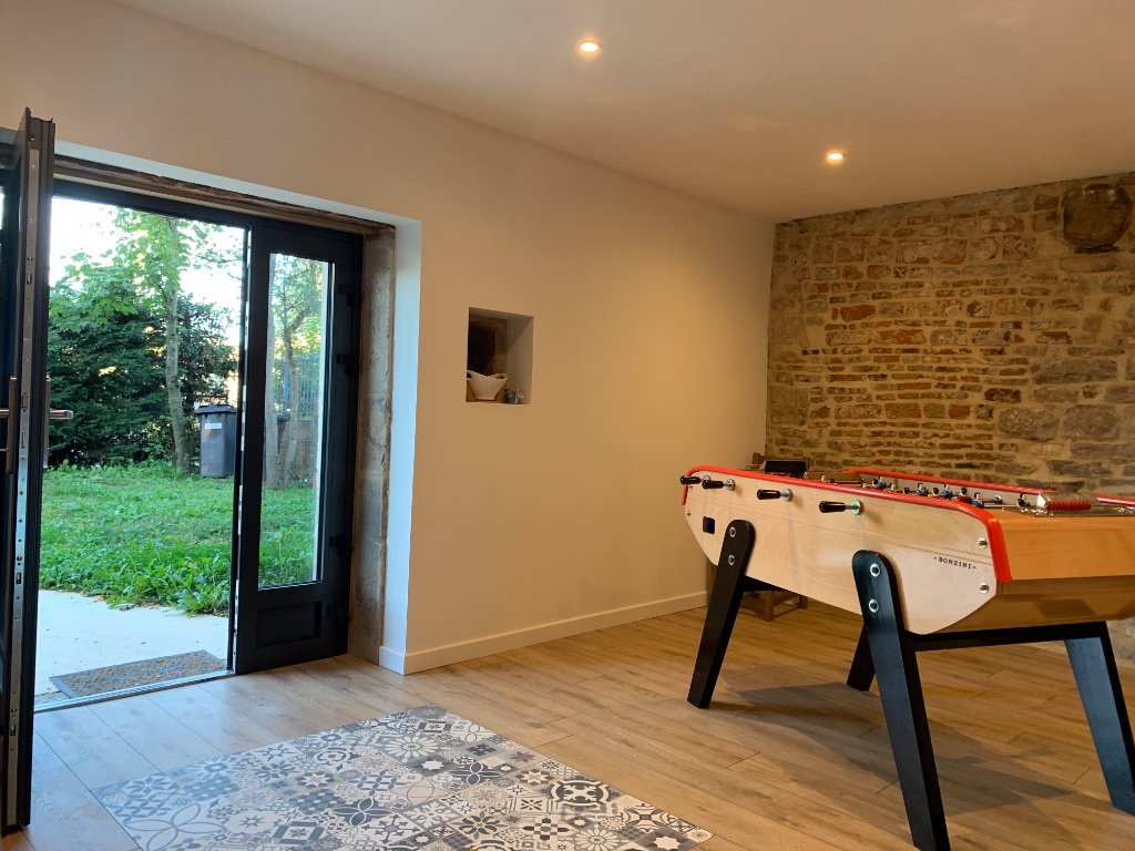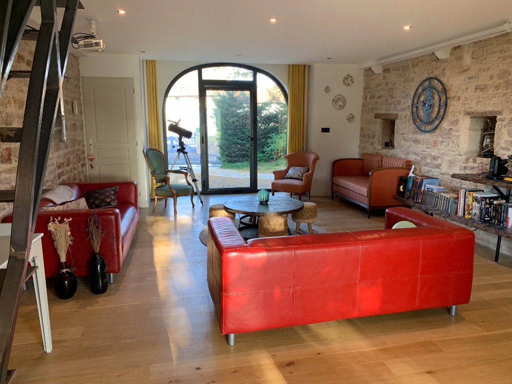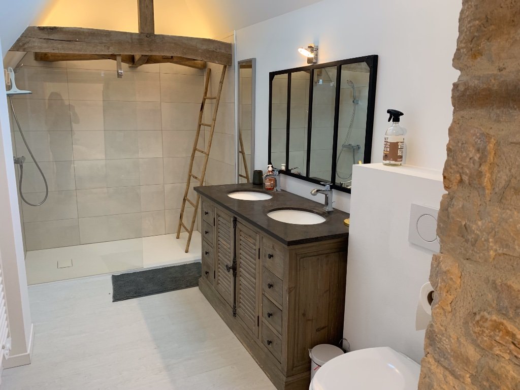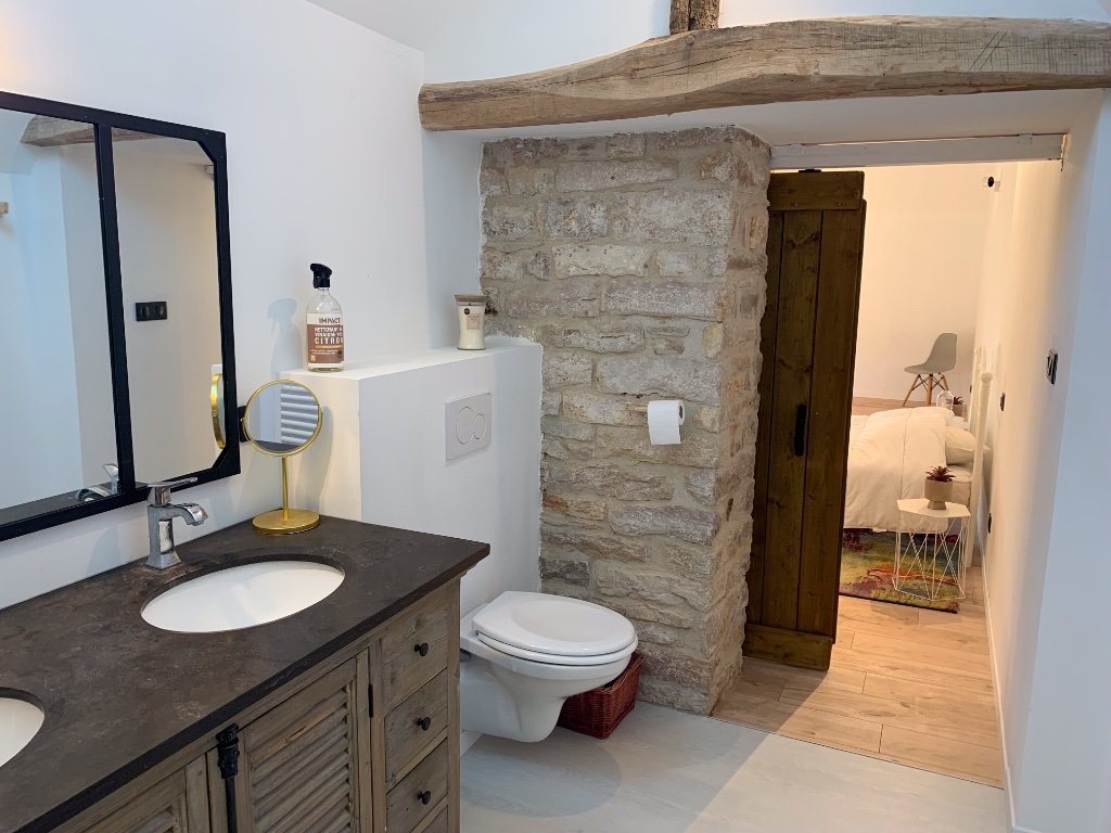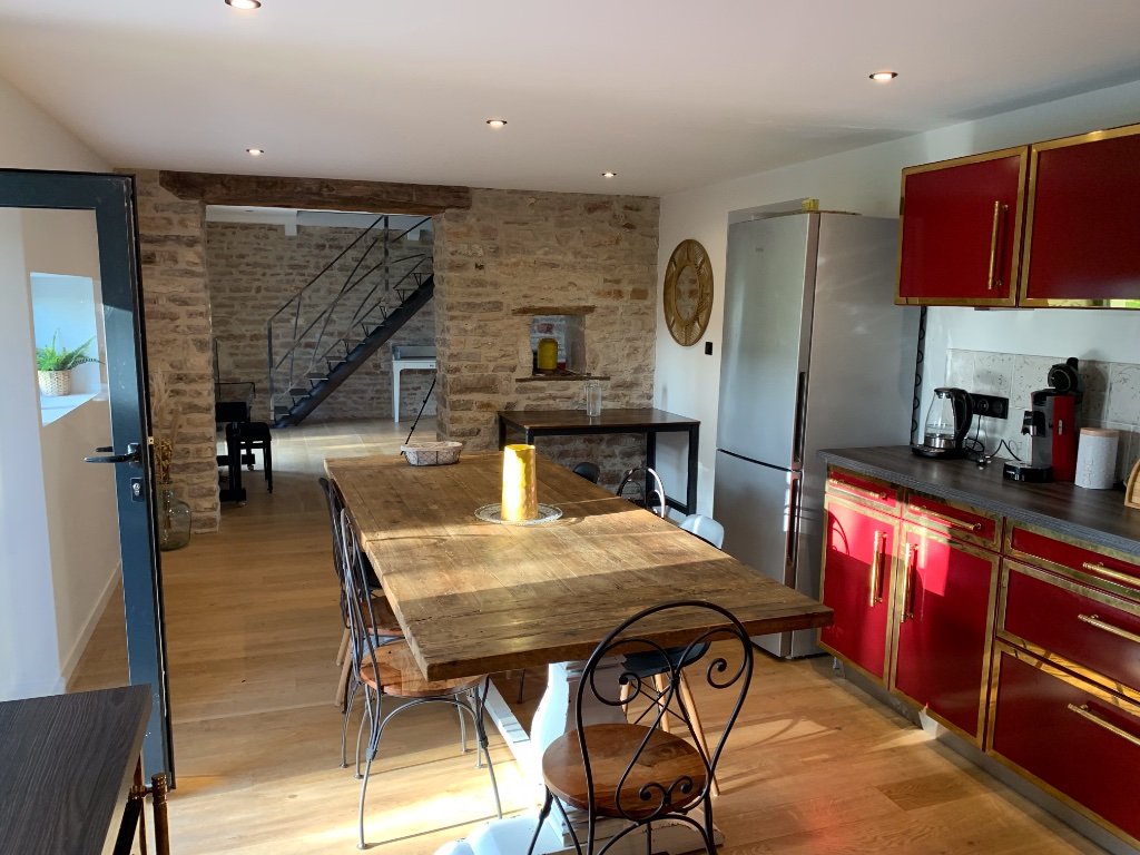 La rénovation de cette magnifique maison en pierres sur 2 niveaux date de 2017 et a mis à l'honneur les codes de l'habitat local avec des murs en pierres et des charpentes apparentes, tout en les alliant avec la modernité de matériaux de qualité.