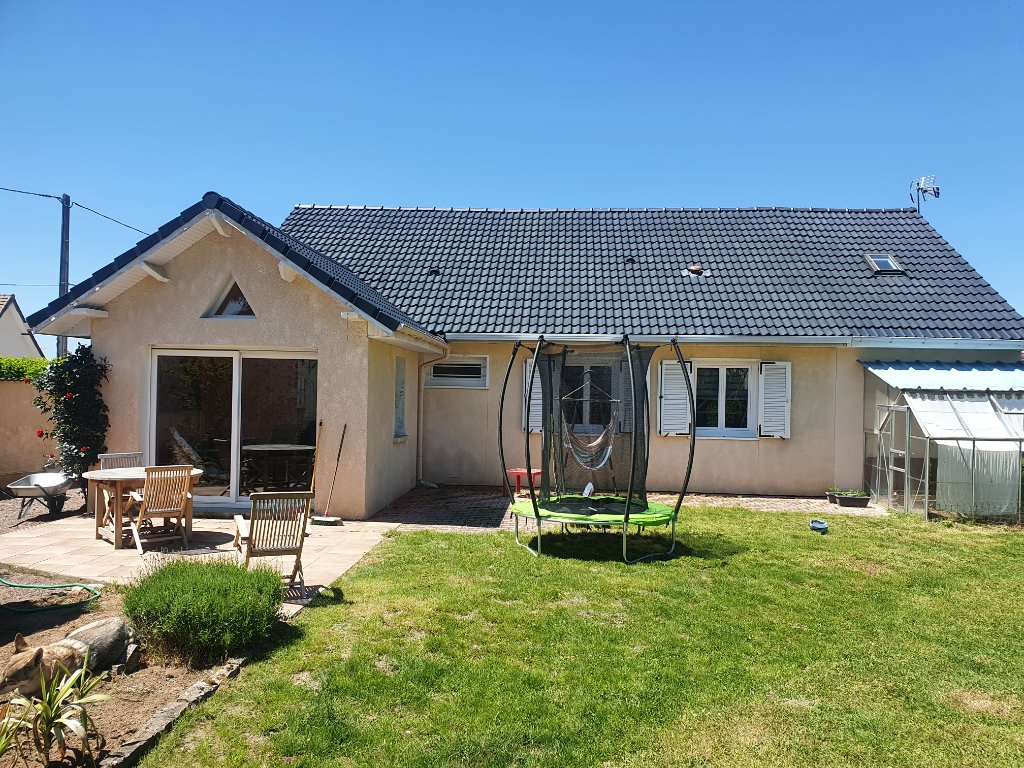 LANS, à 10 minutes de Chalon sur Saône, maison de plain-pied comprenant une entrée, une cuisine indépendante, un salon/séjour , une pièce aménagée en bureau-chambre, 2 grandes chambres, une salle de bains, un WC, une buanderie et une cave.