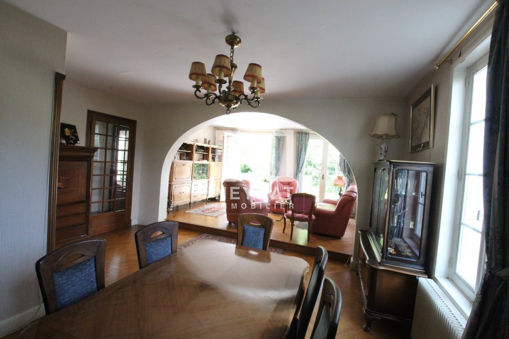 Au rez de chaussée: 1 superbe hall avec sol en marbre et escalier en chêne, 1 couloir, 1 wc avec lavabo, 1 cuisine équipée, 1 salon avec cheminée, 1 salon séjour avec voute et accès terrasse arrière comme le salon, 1 grand garage, 1 cave,