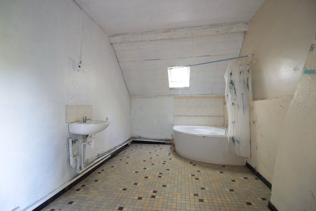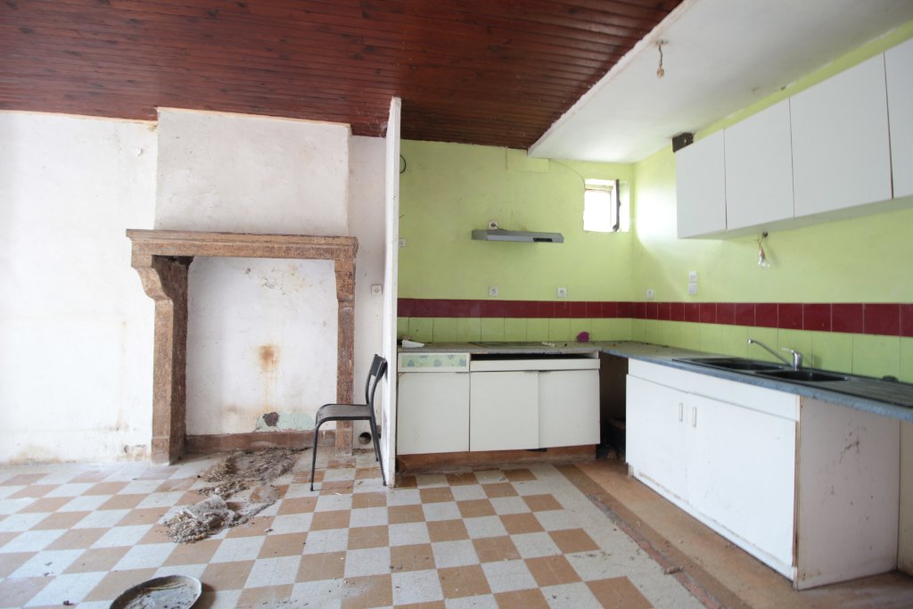 * en rez-de-chaussée, un second appartement T3 de 53.66 m² avec cuisine de 17 m², deux pièces (12 et 11 m²), un WC, une salle d'eau en appentis et une buanderie;