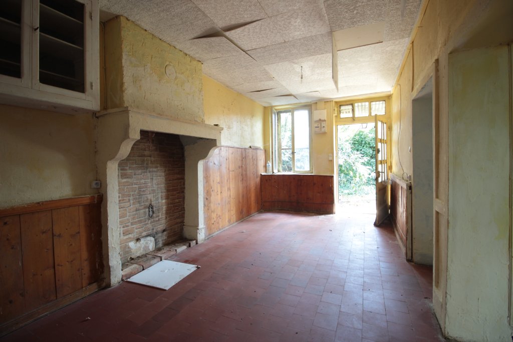* en rez-de-chaussée, un appartement T3 de 76.28 m² avec cuisine dinatoire de 22 m², un salon, un dégagement, un WC et une chambre de 22 m² où l'on pourrait créer une salle d'eau;