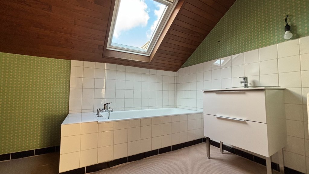 À l'étage, la maison dispose de cinq chambres bien réparties : une chambre avec accès direct à une salle de bains et WC, une deuxième salle de bains avec WC accessible depuis le palier, une chambre équipée d'un point d'eau et WC, et d'autres chambres pourvues de dressings. L'agencement permet une organisation familiale confortable et la possibilité d'aménager des suites privées ou des espaces dédiés au télétravail.