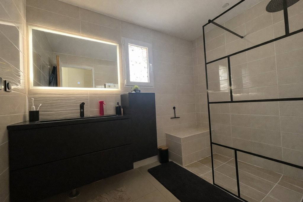 Dès l'entrée, vous serez séduit par la grande pièce de vie traversante (salon/séjour) offrant un espace convivial pour toute la famille. La cuisine, aménagée, s'ouvre sur une charmante petite véranda. Une buanderie pratique complète ce niveau, une suite parentale équipée d'un dressing, d'une salle d'eau moderne et d'un WC indépendant.