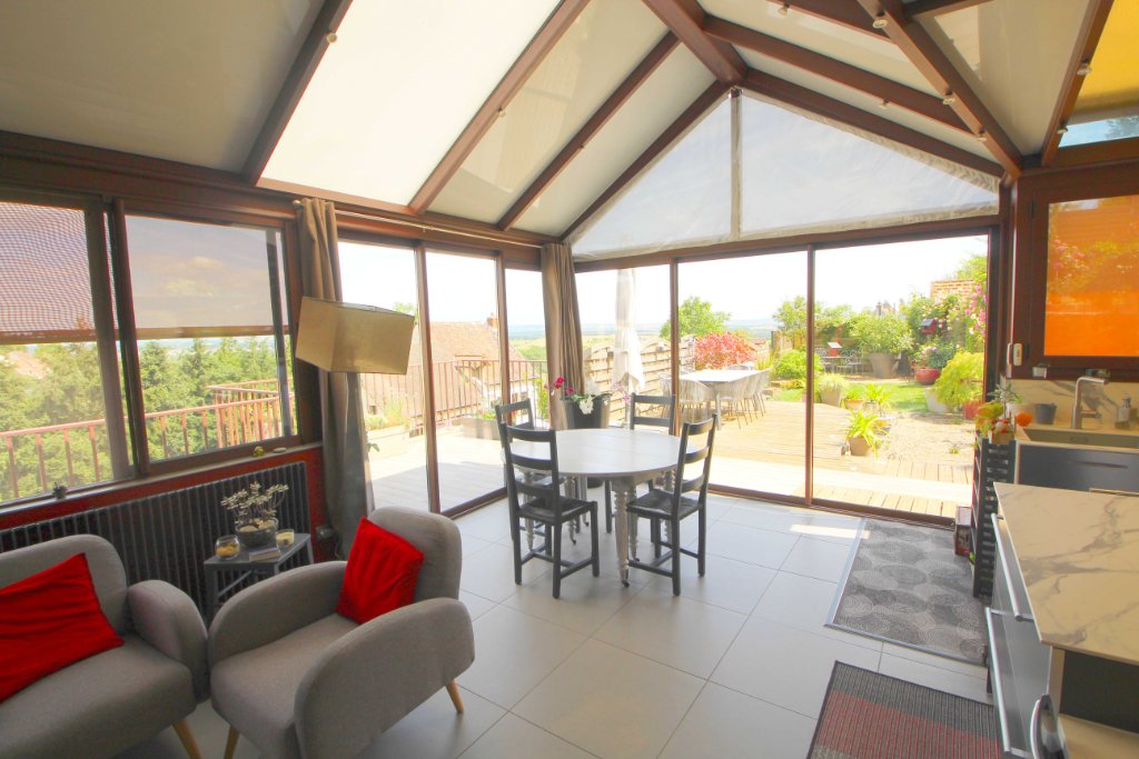EXCLUSIF NEYRAT IMMOBILIER LE CREUSOT Vous propose cette magnifique maison de village au cœur de Montcenis. Elle se compose au RDC d'une grande pièce de réception avec son coin cuisine, d'une pièce de stockage, d'un WC, de la chaufferie, d'une très belle cave voutée et du garage. Au premier étage 1 chambre, un salon séjour avec une immense cheminée ouverte, une buanderie,1 salle d'eau, WC et d'une splendide véranda climatisée faisant office de cuisine et salon avec une vue s'arrêtant au Mont Blanc et un accès direct à la terrasse extérieure. Au deuxième étage un grand palier pouvant servir de bureau, 3 chambres, 1 salle d'eau, un WC. Cette maison a toujours été extrêmement bien entretenue. A l'extérieur, une belle terrasse et un très beau jardin paysager en butte conçu et réalisé par un professionnel. Son toit en tuiles plates a été refait entièrement en 2021. La chaudière gaz est elle aussi très récente. Pour davantage d'informations et pour faire une visite contactez Jérémie Langillier agent commercial 03.85.58.66.83