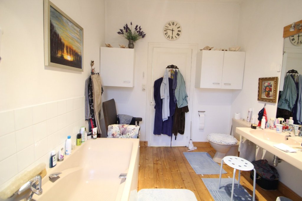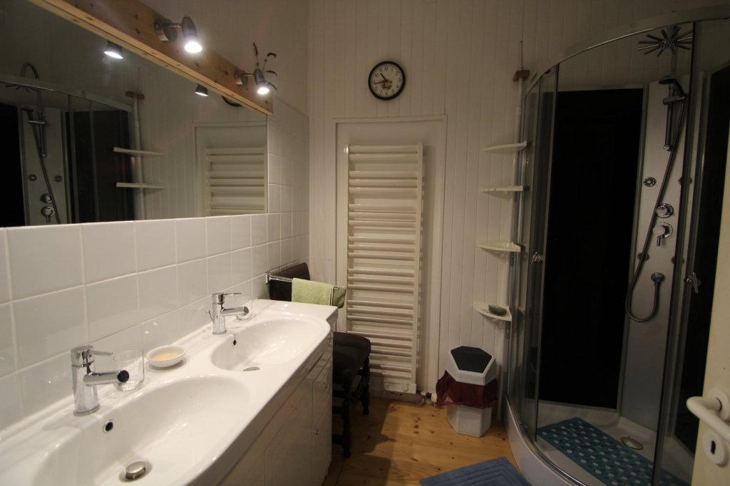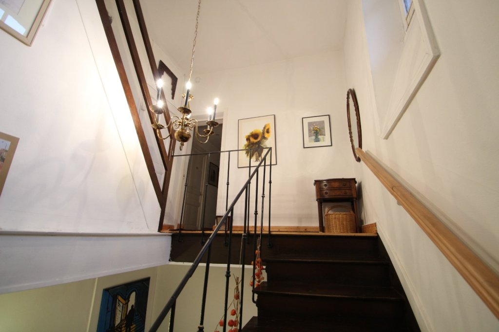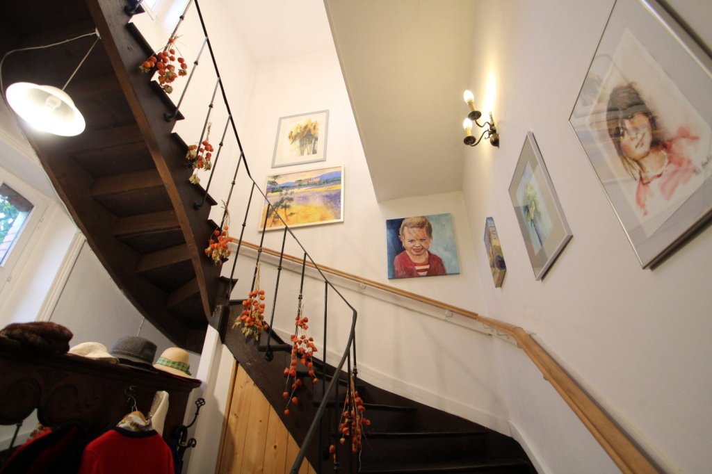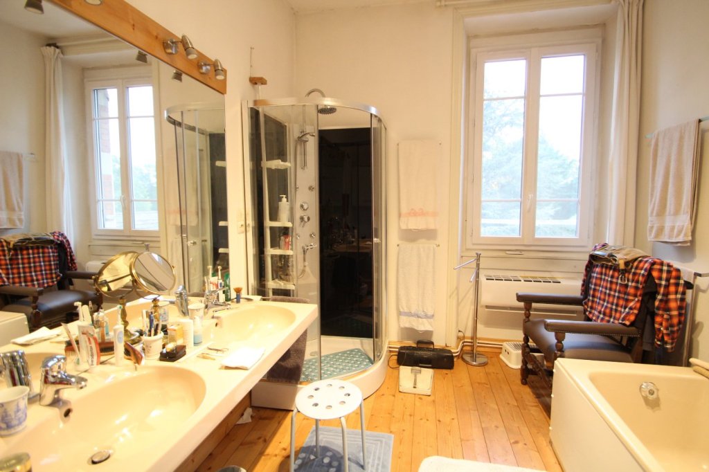 Au premier étage de trois belles chambres et d'un grand bureau, ainsi que d'une salle de bains avec douche et Wc et une salle d'eau avec Wc.