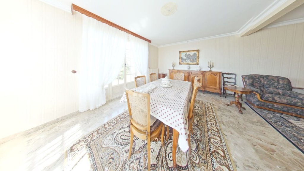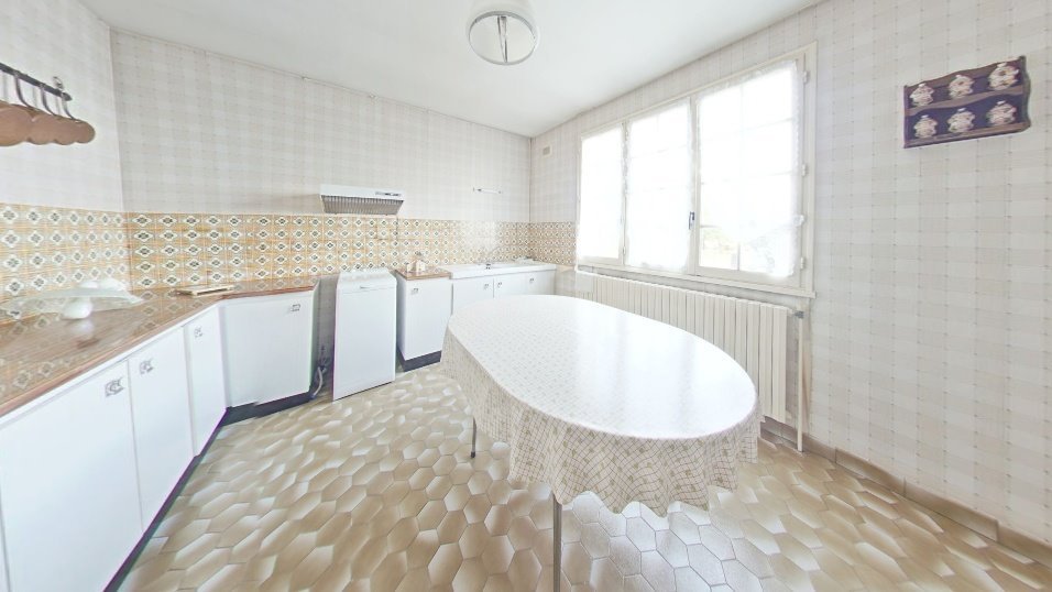 Cette maison de 128 m² habitable est composée au rez de chaussée d'un séjour double de 33m² ouvert sur terrasse, une cuisine, quatre chambres, une salle de bain avec baignoire et douche et un WC. Au premièr étage une grande chambre et une salle d'eau avec WC.
