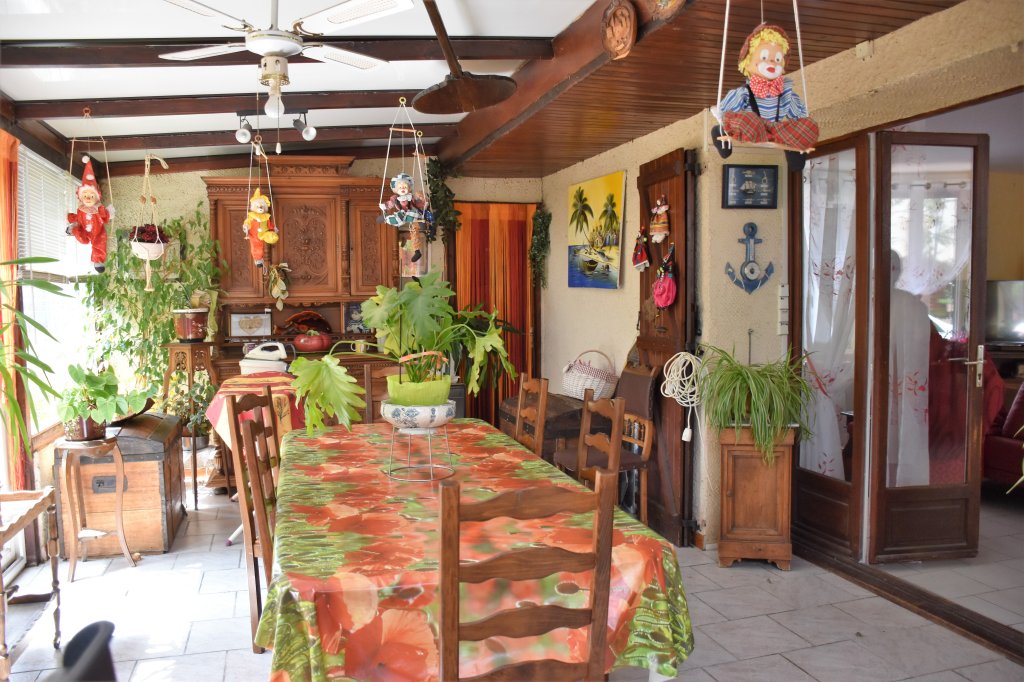 Cette maison des années 1930 de 165 m² habitable est composée au rez-de-chaussée d'une cuisine équipée , un séjour donnant sur grande véranda, une chambre, un couloir, une salle de douche avec WC. A l'étage un grand pallier, quatre chambres dont deux donnant sur grand balcon, un WC, une salle de douche. Un garage indépendant, une remise, un atelier. Chauffage électrique. Terrain clos et arboré avec deux accès d'une superficie de 1554 m². Idéale pour une grande famille.