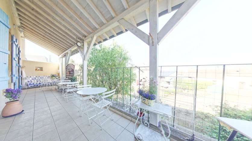 Cette demeure est agrémentée d'un grand garage, d'une cours, une terrasse et un jardin privatif permettant l'axé au cave voutées.