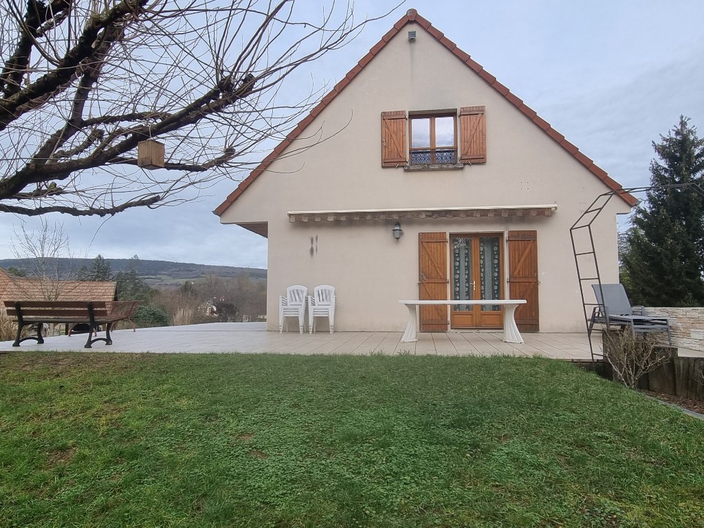 Cette maison présente de beaux volumes grâce à ses 155 m², son terrain de 2700 m² et une jolie vue dégagée.