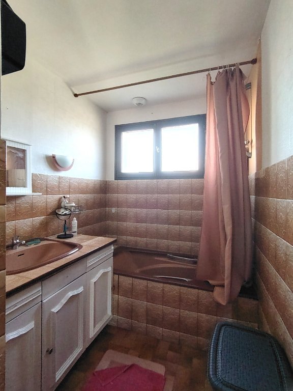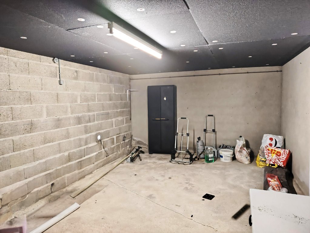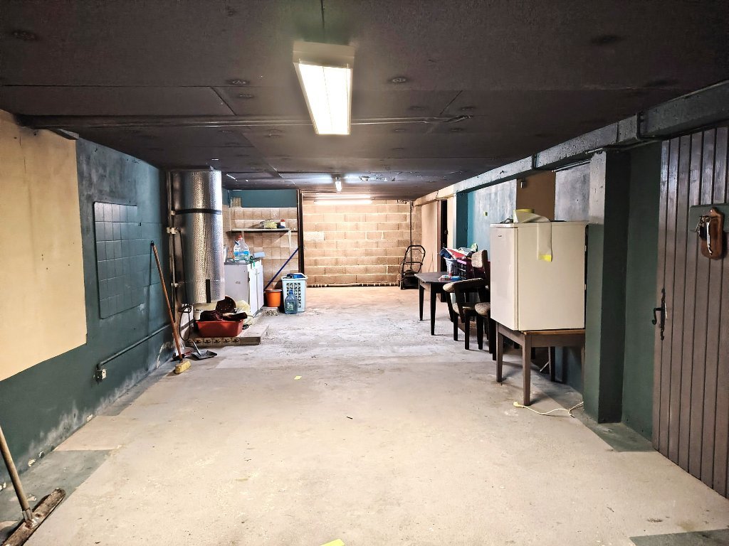 Le rez-de-chaussée offre une belle surface de rangement accessible de l'intérieur : dégagement, salle de bains, une pièce actuellement utilisée en chambre d'appoint, un grand garage, une cave et des WC. Ces volumes complémentaires apportent confort et praticité au quotidien, que ce soit pour accueillir des véhicules, installer un atelier ou aménager des espaces supplémentaires.