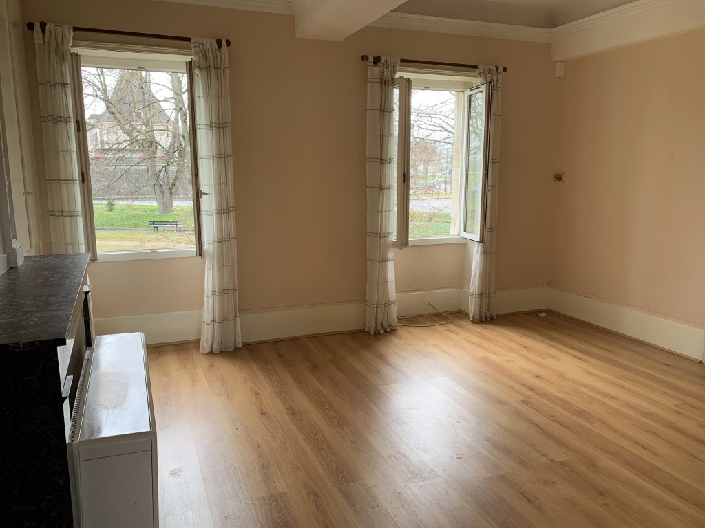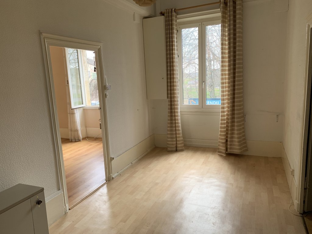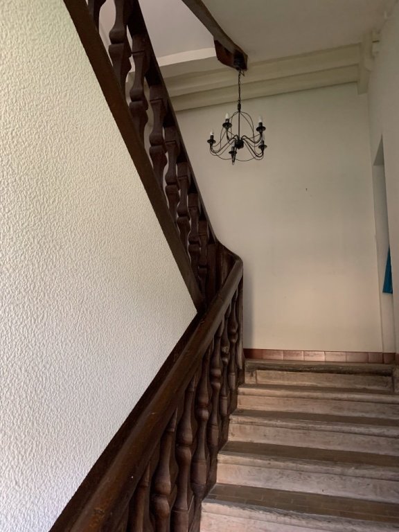 Au premier étage auquel on accède par un bel escalier en bois, un appartement rénové comprend une entrée, une chambre avec une salle de bains, un salon, une salle à manger, une cuisine et un WC buanderie. Le chauffage est électrique et les huissiers en bois double vitrage.Une remise au goût du jour sera nécessaire.
