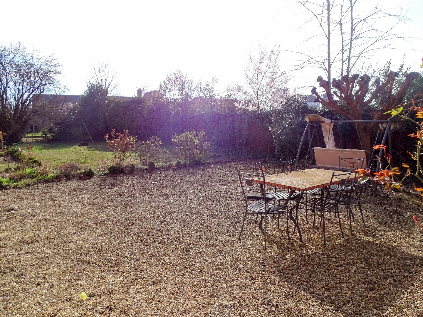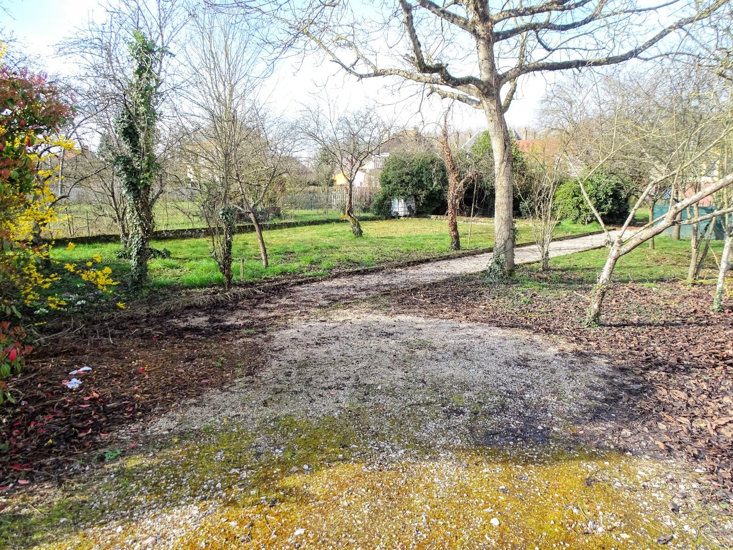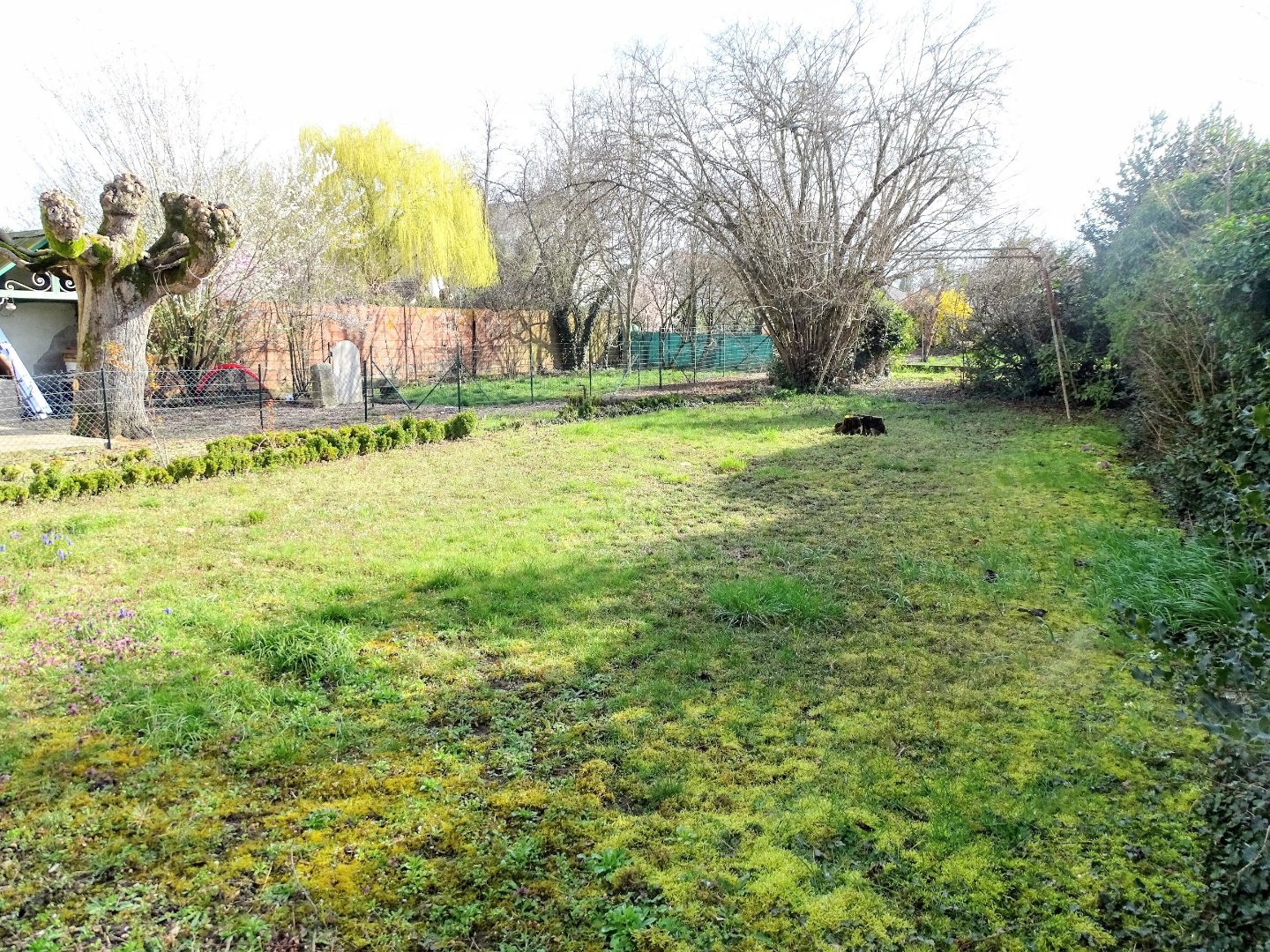 Le terrain est plat et arboré.