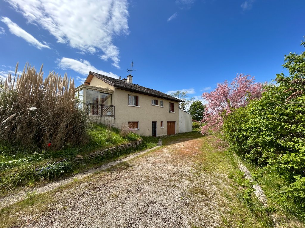 En retrait du village de Saint Ambreuil, ce pavillon construit à la fin des années 1970, sur 2 niveaux, dispose d'une superficie totale habitable de 160m2 et d'un grand jardin de plus de 3600m2.