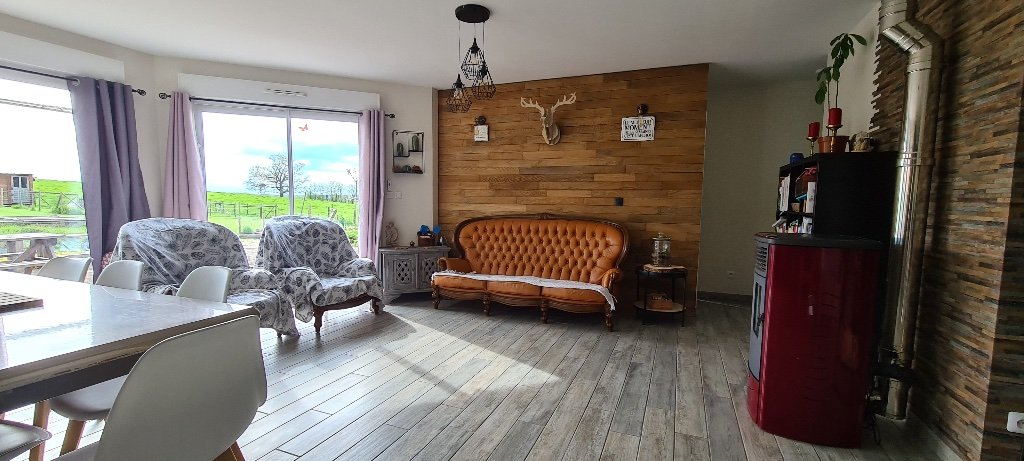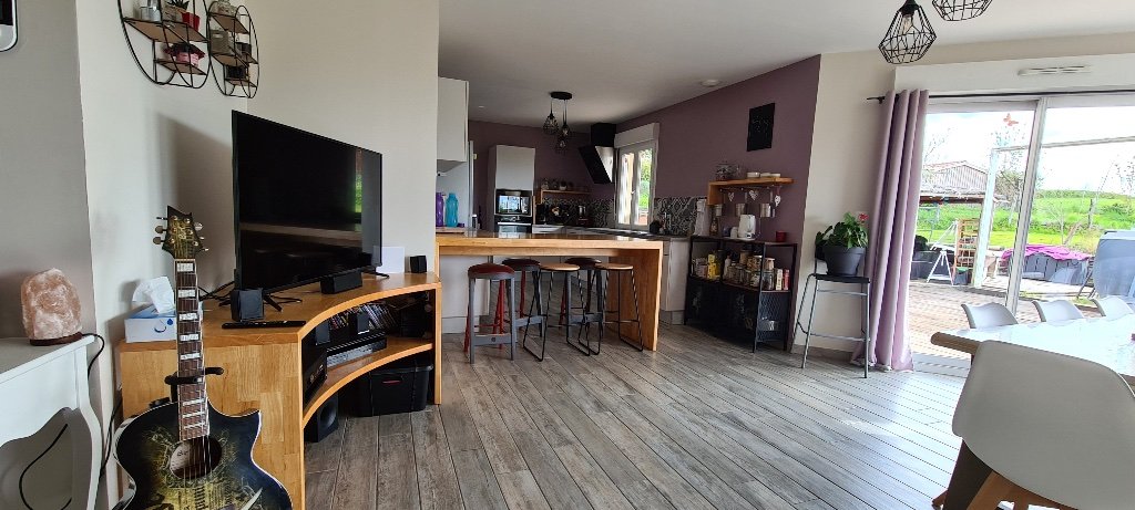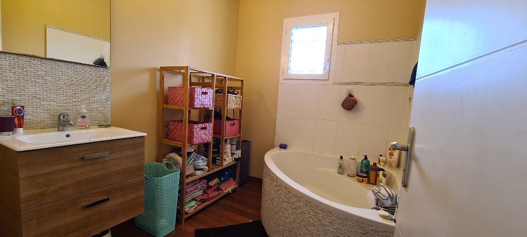 Une entrée, un double séjour avec cuisine ouverte, 4 chambres dont 1 chambre parentale avec salle d'eau, une salle de bains et un wc.