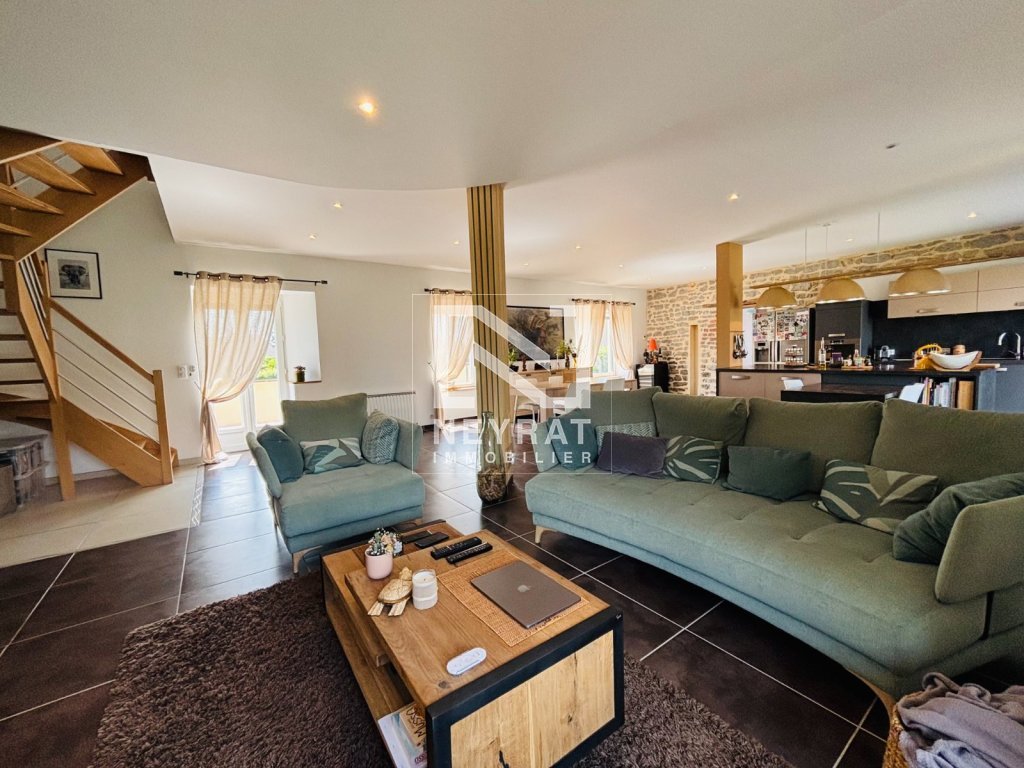 D'une superficie de 160 m², ce bien se distingue par sa vaste pièce à vivre de 72 m², baignée de lumière, qui invite à la convivialité. La cuisine aménagée et équipée, le salon et le séjour forment un espace de vie chaleureux et accueillant. Au rez-de-chaussée, vous trouverez également une buanderie pratique, une salle d'eau moderne et un WC.