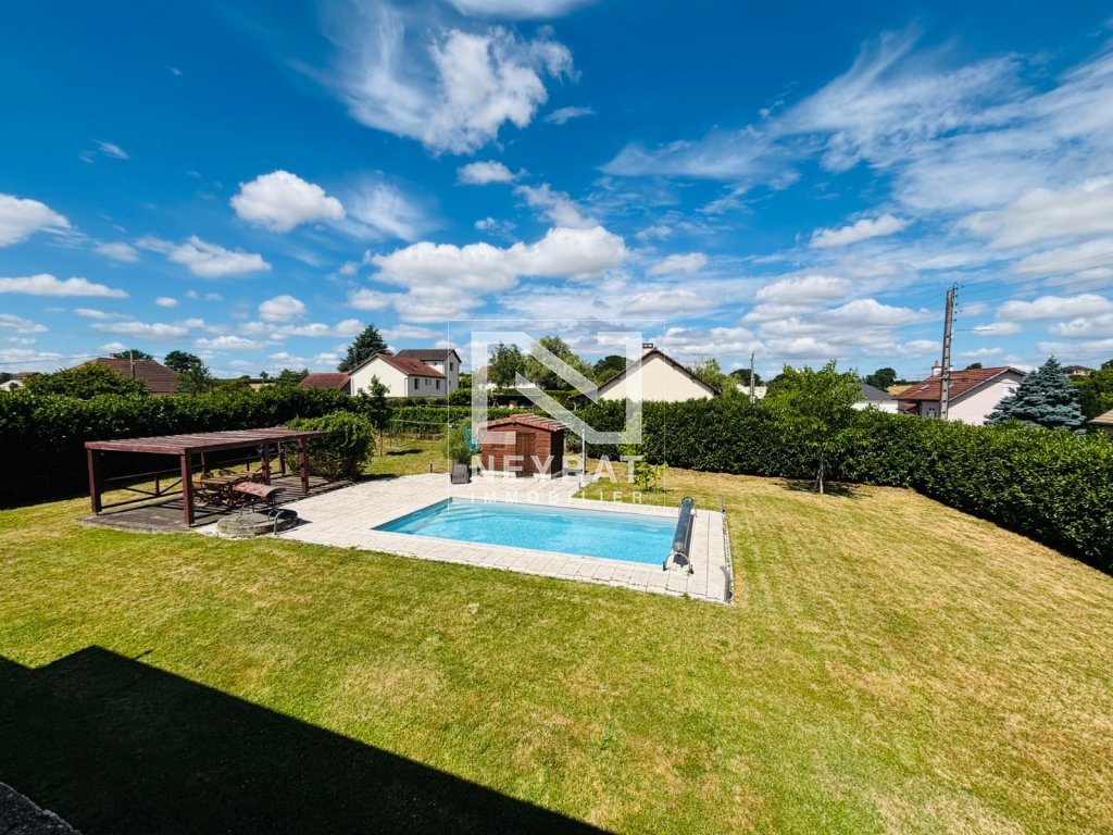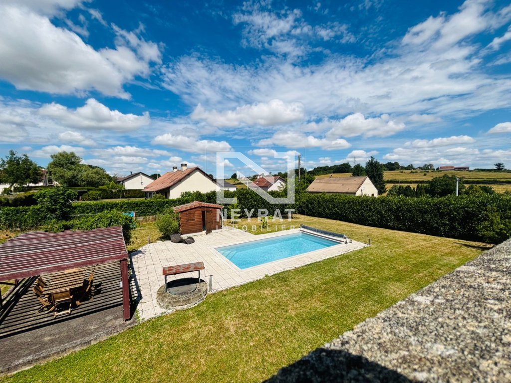 Le terrain de 1377 m², clos et arboré, est un véritable havre de paix. Vous pourrez profiter d'une belle piscine de 8x4 m, idéale pour les journées ensoleillées, ainsi que d'une grande dépendance comprenant une cuisine d'été, un atelier et un garage avec porte motorisée.
