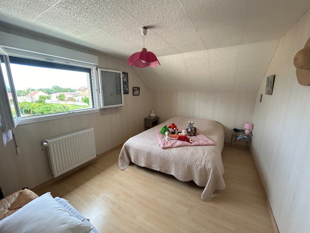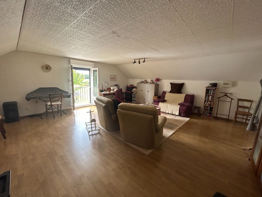 À l'étage, un grand palier dessert 2 chambres dont une très grande qui pourrait être divisée, une salle d'eau avec WC et un débarras.