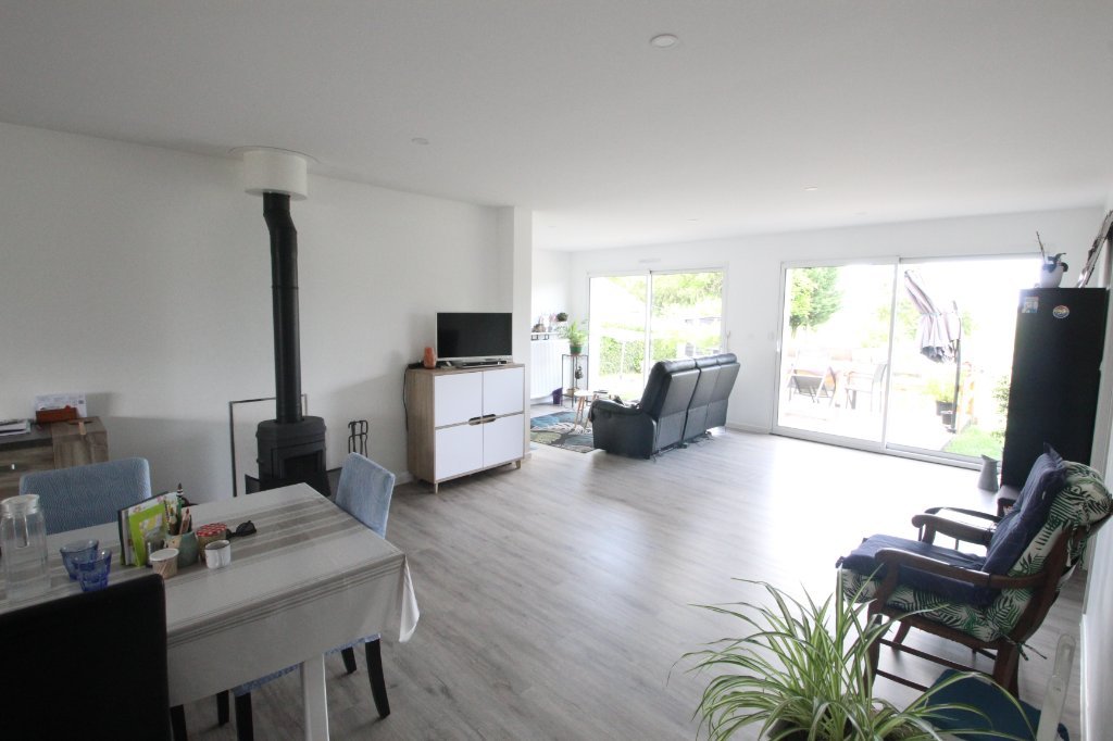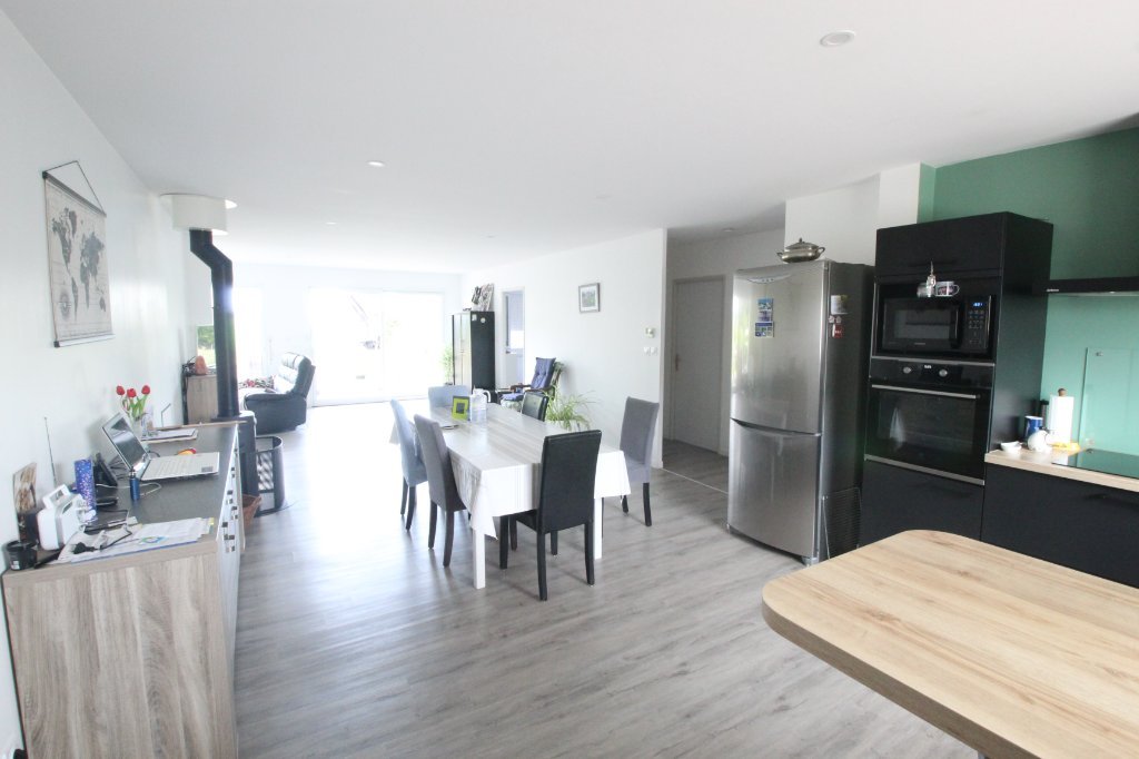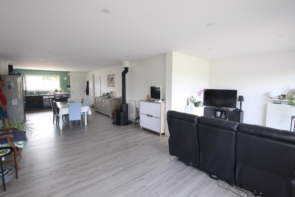 Il comprend: 1 grande pièce de vie de 58m2 (possibilité de réduire et de faire une 3ème chambre) avec cuisine équipée de qualité, 1 salon avec 2 grandes baies vitrées donnant sur grande terrasse bois avec vue imprenable sur les champs, 2 chambres dont 1 avec dressings muraux, 1 salle d'eau équipée, 1 wc avec lave main, 1 cellier, 1 grand garage avec porte sectionnelle électrique, 1 atelier, 1 grenier avec accès depuis le garage,