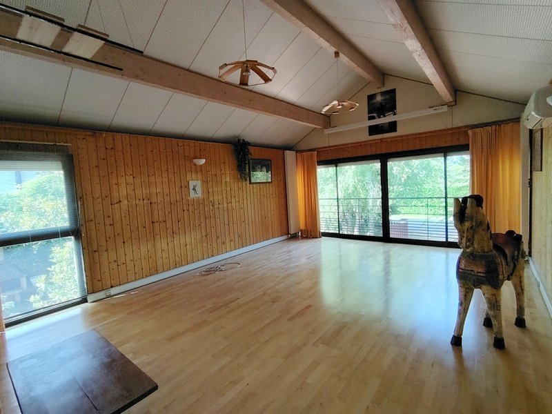 -Au 1er étage deux chambres, un couloir, un wc, une salle de bains, une cuisine, un salon / salle à manger, un coin entrée et une grande pièce faisant office de salle de musique (climatisée et anti bruit).