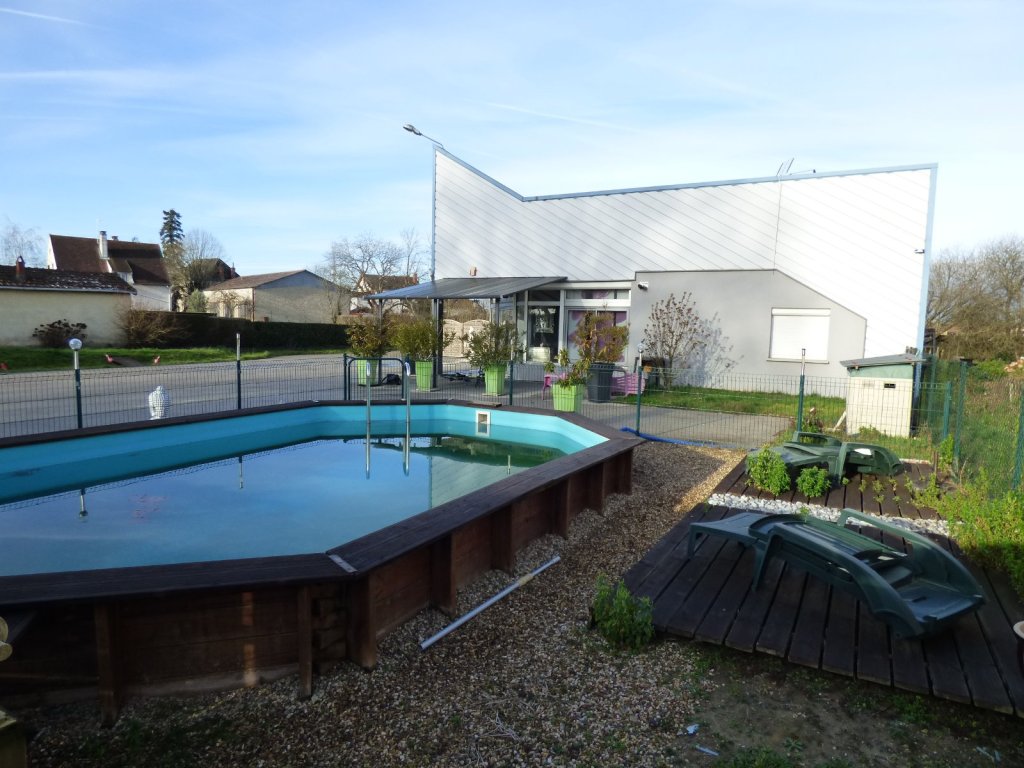 Au bourg de Saint Martin en Bresse, ancien bâtiment industriel/commercial séparé en deux parties attenantes, une habitation de 149 m² et un espace de stockage/garage fermé de plus 300 m². Pour la partie habitation de plain pied, 2 voir 3 chambres, ou plus encore, dont une avec un accès indépendant et un bureau, une salle de douche à l'italienne, WC séparé. Un bel espace à vivre esprit loft et cuisine surélevée avec îlot central et grande entrée séparée. Le hangar est constitué d'un grand espace de stockage et de 3 remises fermées. Poele à granules, chauffage central gaz de ville, tout à l'égout, espace piscine hors sol aménagé et protégé, 1663 m² de terrain clôturé. Des volumes !