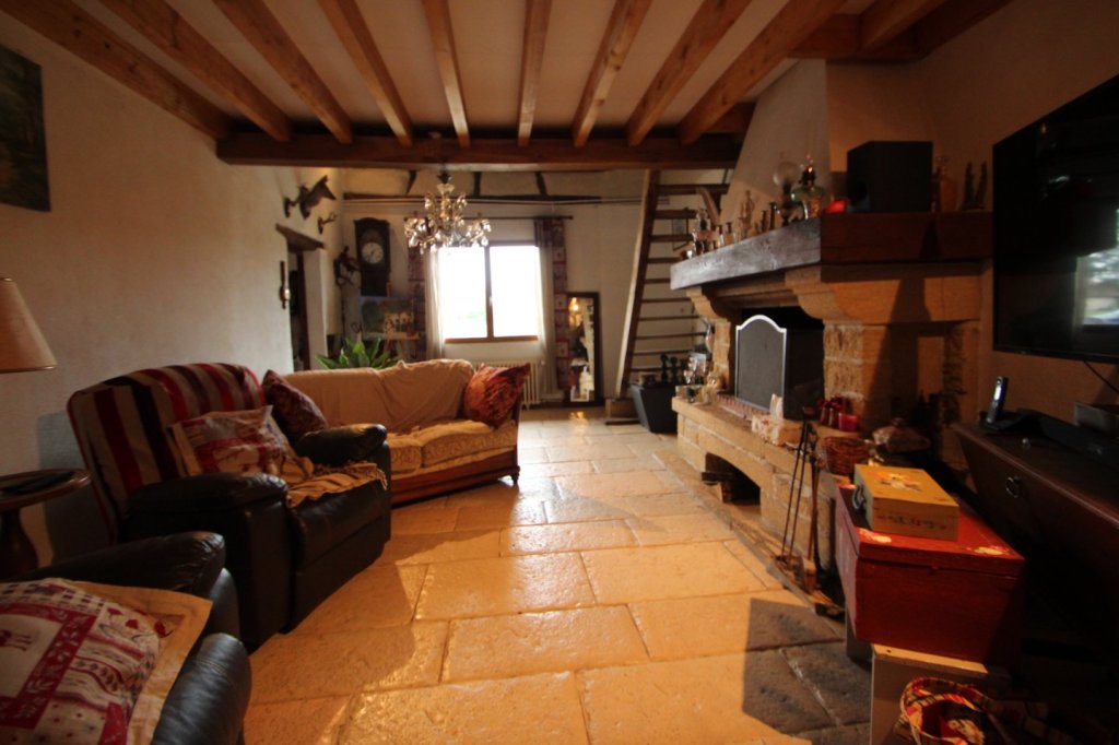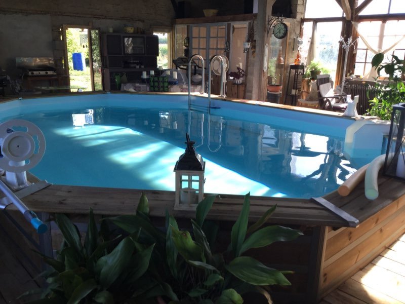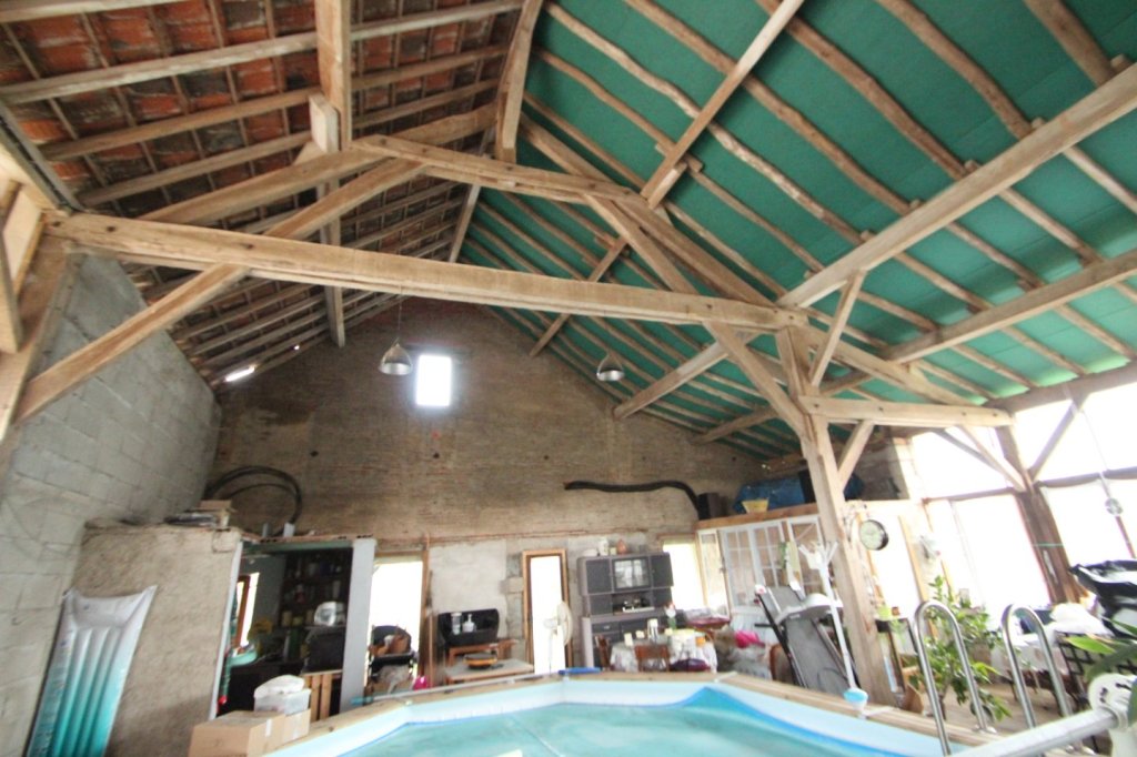 Cette longère comprend au RDC une entrée, une grande pièce de vie, une cuisine, une véranda, une salle d'eau, deux chambres, un salon, un bureau, une buanderie, un cellier, une cave, une chaufferie, un local technique piscine et une piscine couverte dans une grange. Un chauffage central avec 2 chaudières neuves poêle à bois et granules. Panneaux solaire pour chauffer l'eau du cumulus. Possibilité de louer le terrain à coté d'un hectare pour 150 Euros .