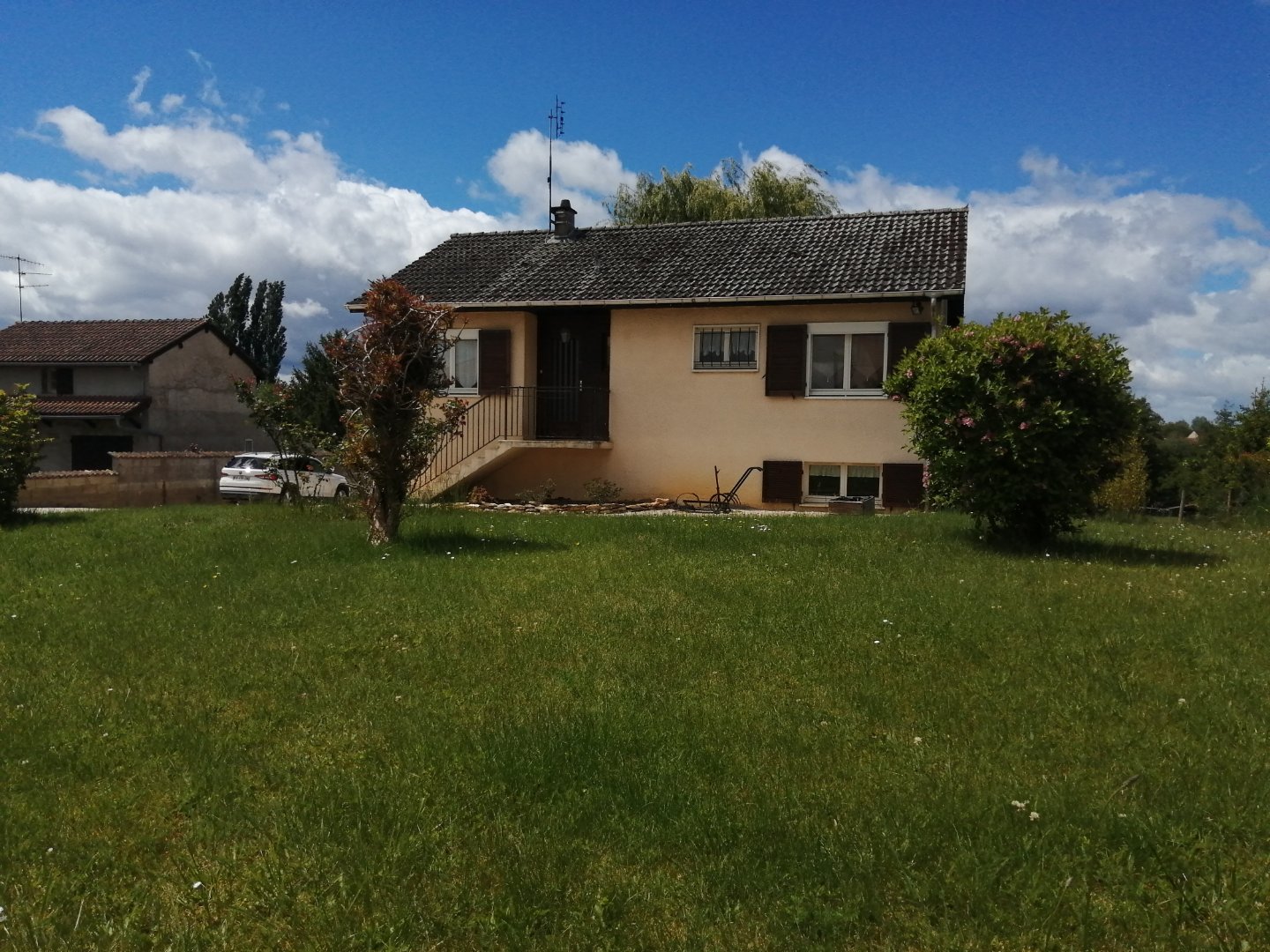 Maison située à 2 km de Saint Martin en Bresse,( PERRIGNY) un petit village ou il fait bon vivre avec collège, écoles, commerces, pharmacie, médecins, proche de Chalon sur Saône ( 20 min), sur une grande parcelle de 3200 m² au calme, maison avec un étage constituée au rez de chaussée d'un grand garage avec petite cuisine d'été, une chambre. A l'étage 2 chambres, une cuisine équipée lumineuse, salle salon très lumineux, une salle de bains à rafraîchir, un WC, un hall avec placard muraux, volets roulants électriques, chauffage central au fuel, fenêtres doubles vitrages bois, fosse septique, une grande cour, à l'extérieur une terrasse et au fond du terrain un petit cours d'eau. Agent immobilier NEYRAT Nicolas Pacot 06.22.89.22.83.