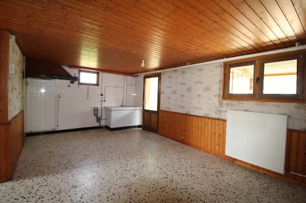 Au rez de chaussée : un grand hall d'entrée, une chambre, une grande cuisine, une petite véranda, un coin chaufferie, un WC, un garage.