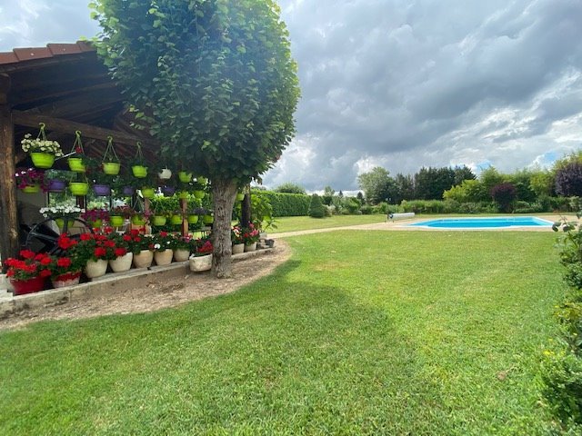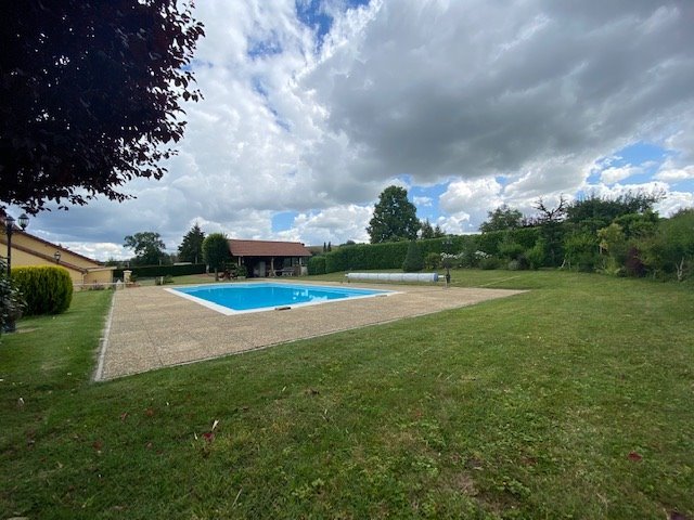 Cette propriété est édifiée sur une parcelle de 4400m² clôturé, comprenant une cour bitumée, un jardin, un verger, un espace piscine (6x12) avec cuisine d'été sous préau, un garage de 5 voitures, atelier....
