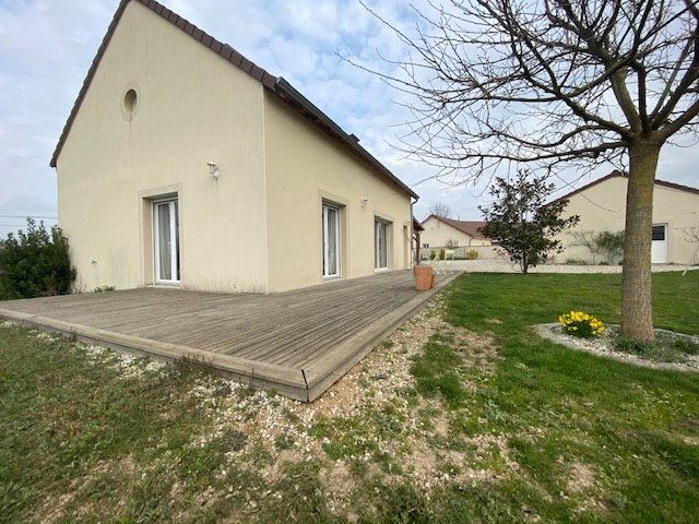 A Saint Yan maison de plain pied de 2013, comprenant un grand séjour double cathédrale et cuisine ouverte donnant sur une terrasse, un cellier, quatre chambres, un bureau ou salle de jeux, un coin mezzanine, une salle de bains, une salle d’eau wc.