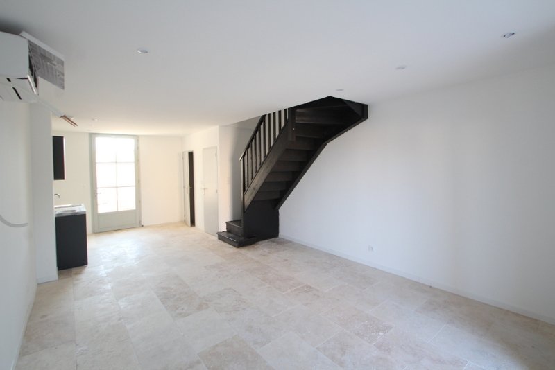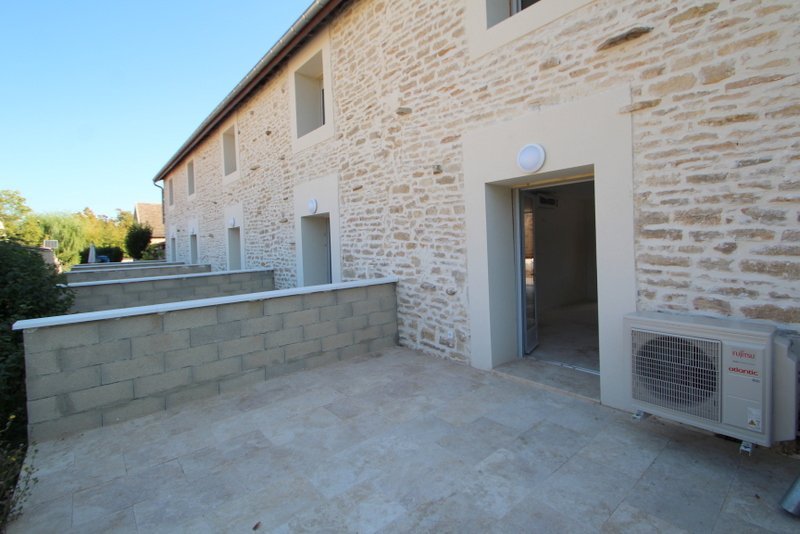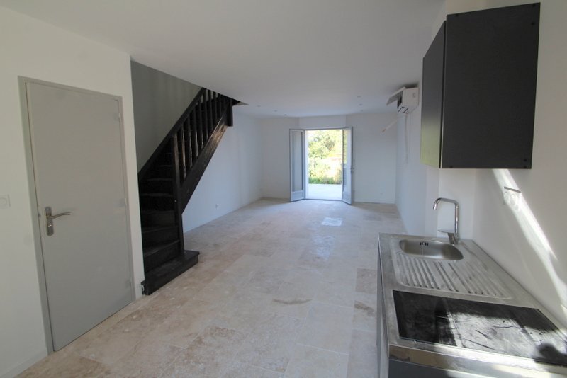 Maison d'habitation mitoyenne comprenant une cuisine ouverte sur salon salle à manger, un wc, une buanderie et deux terrasses.