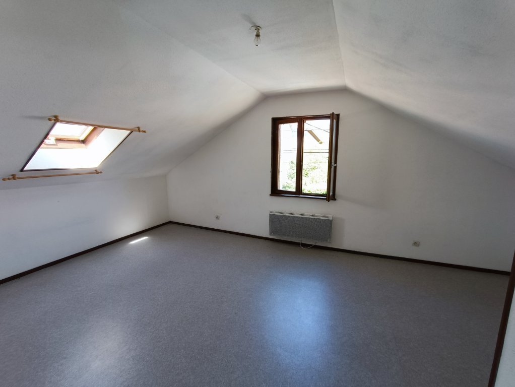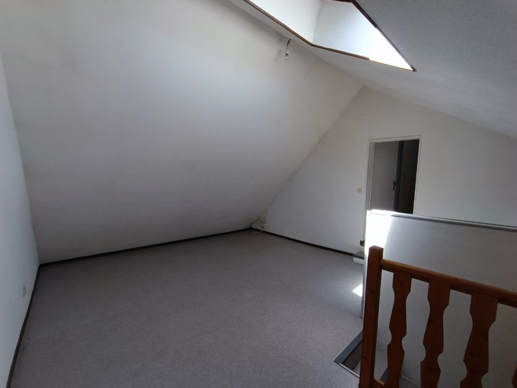 A l'étage, vaste pallier (possibilité d'une 3e chambre), 2 chambres, 1 salle d'eau avec WC.