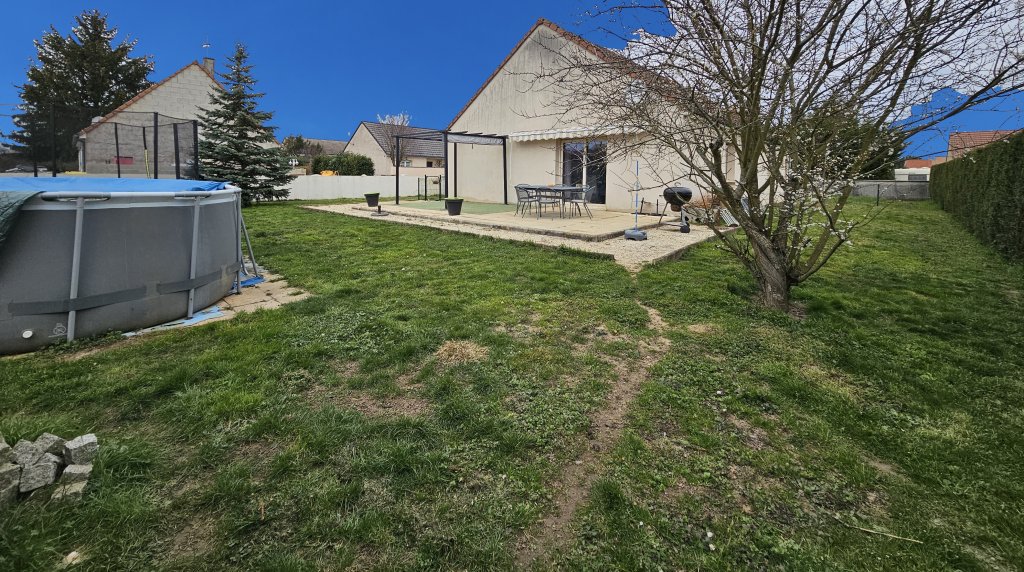 Rare : Au cœur du village, quartier calme à proximité des transports en commun et à 5 mn des commerces, maison de plain pied de 94 m² habitables, se composant d'un salon séjour très lumineux, une cuisine équipée, trois chambres, une salle de bains et douche, un cellier, garage, terrasse extérieure équipée d'un store banane et pergola, chauffage électrique, le tout sur un terrain de 857M² clos et arboré, portail aluminium, à VISITER RAPIDEMENT !