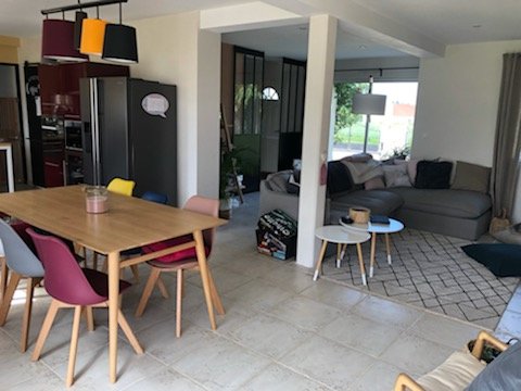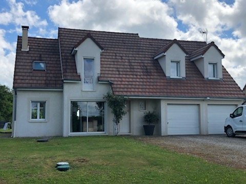 Maison de 2008 comprenant au RDC une entrée avec placard, un WC, une cuisine ouverte sur salon/ salle à manger, un cellier, un double garage et un coin bucher. A l'étage quatre chambres dont une chambre parentale avec dressing et une grande salle de bains avec baignoire et douche.