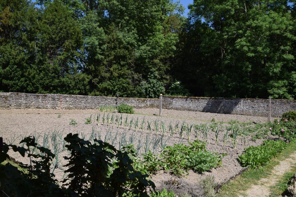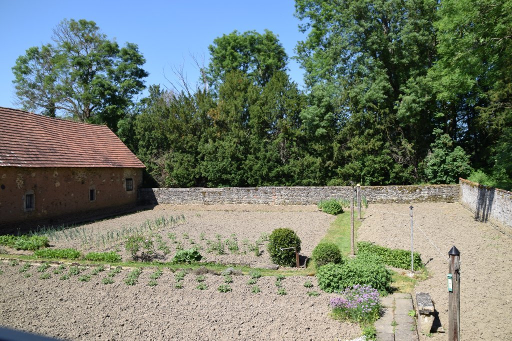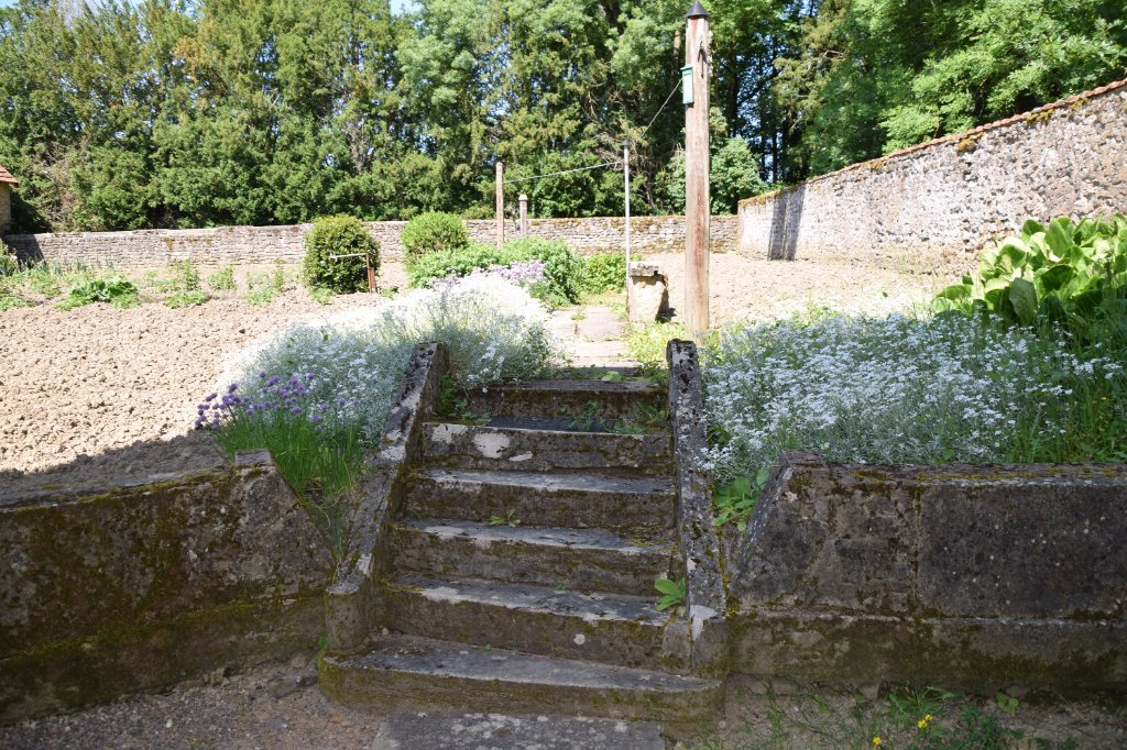 Jardin potager muré à l'arrière.