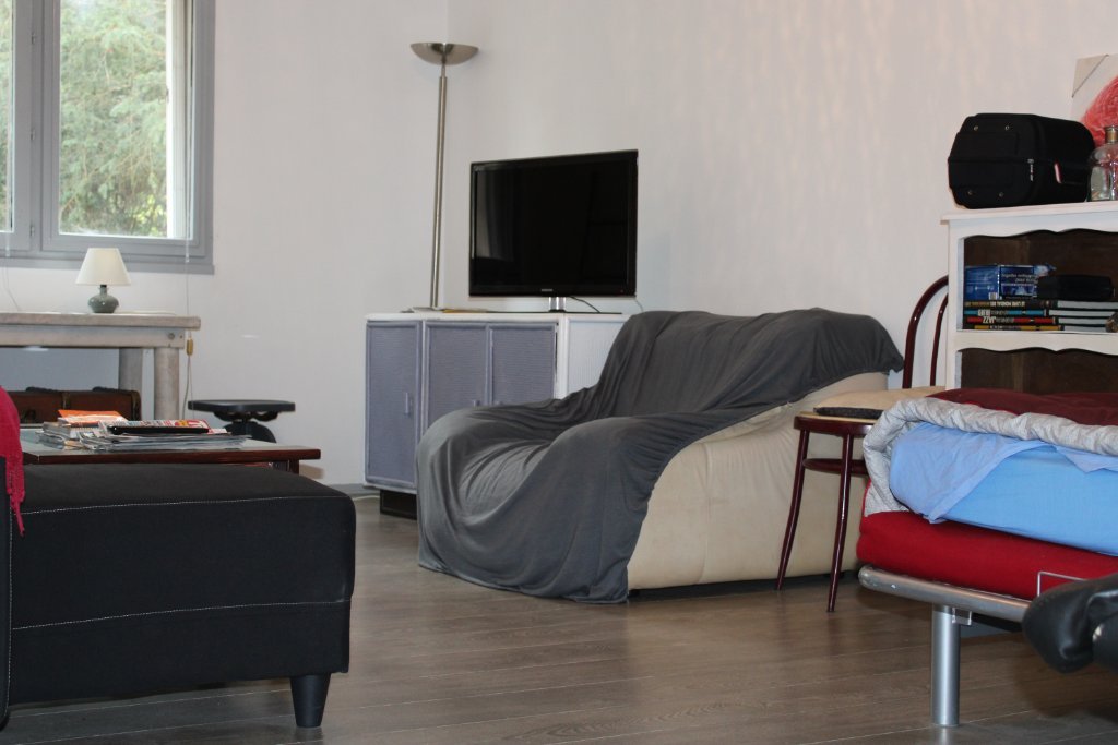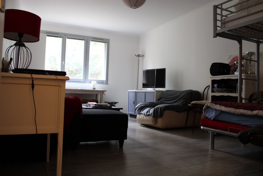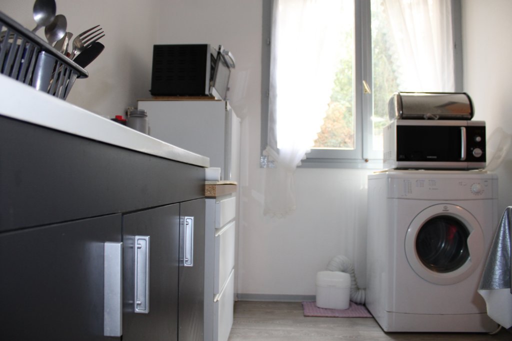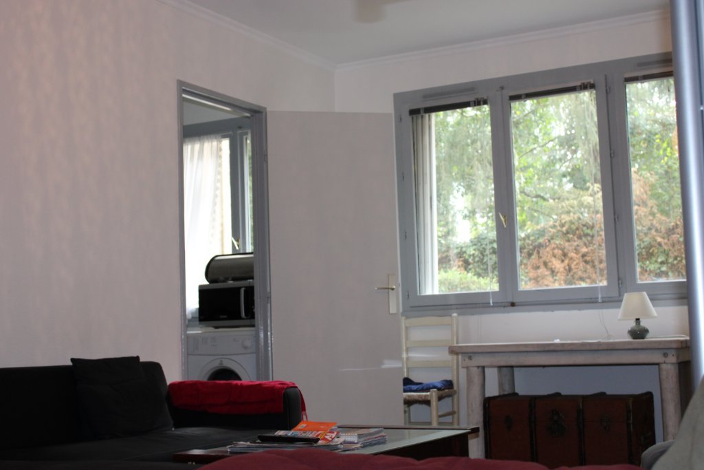 Au rez de chaussée d'un immeuble de 5 étages, appartement lumineux avec salon séjour, cuisine, salle de bain avec wc et rangements.