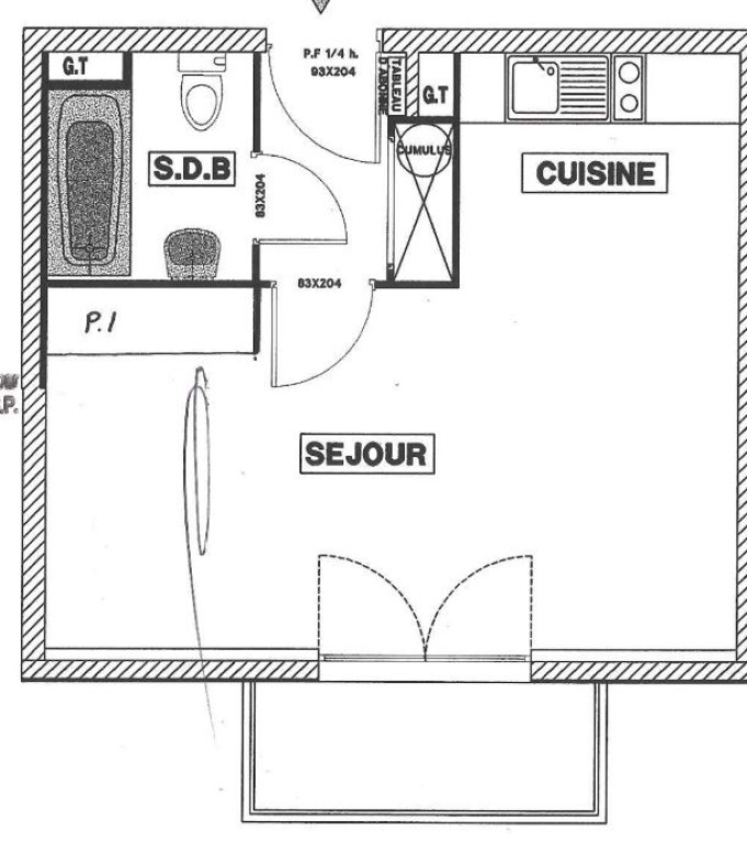 - Séjour avec cuisine ouverte : 23 m2