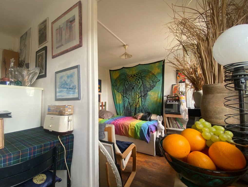 Studio composé d'une entrée kitchenette et une chambre .