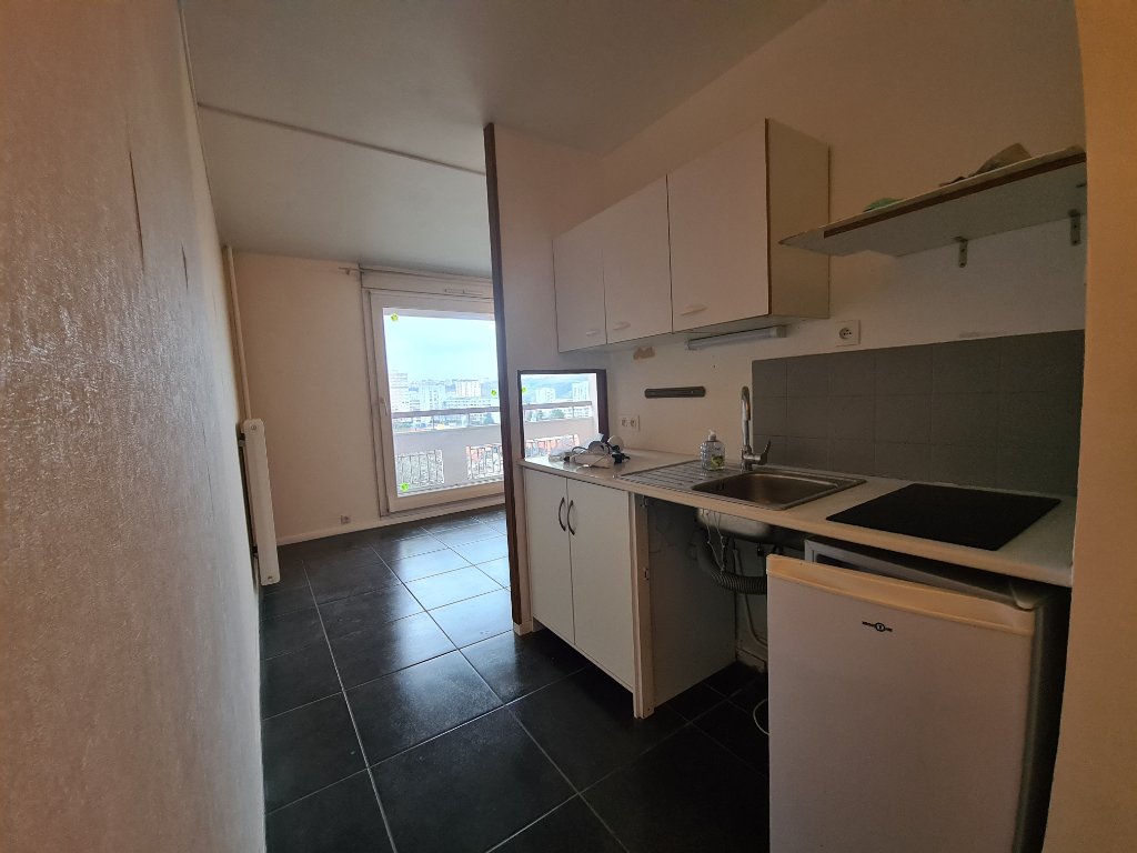 T1 - 29.96m2 - 7EME ETAGE avec balcon, entrée, pièce de vie avec cuisine ouverte, salle de bain avec WC, nombreux rangements, cellier sur le palier, cave, place de parking couverte avec accès sécurisé.