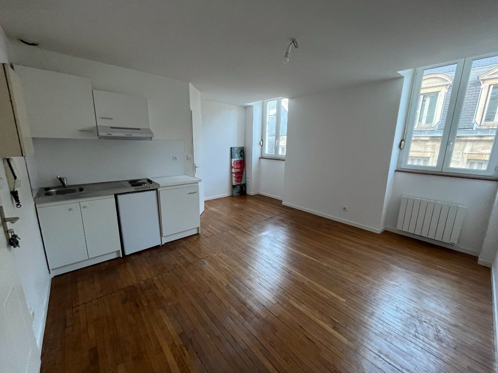Studio au cœur de Dijon de 20m² au 2ème étage comprenant : une pièce de vie lumineuse avec un coin cuisine équipée (hotte, réfrigérateur, plaques électriques) et une salle d'eau avec WC.