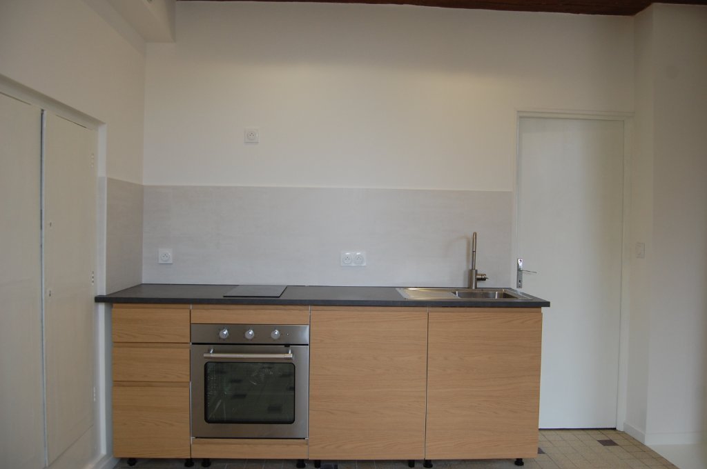 Appartement T1 rénové, proche commerces, comprenant un séjour avec cuisine ouverte meublée et équipée d'une table de cuisson et d'un four.