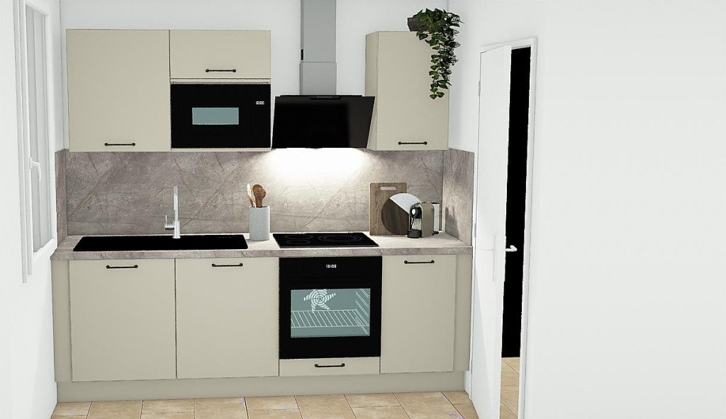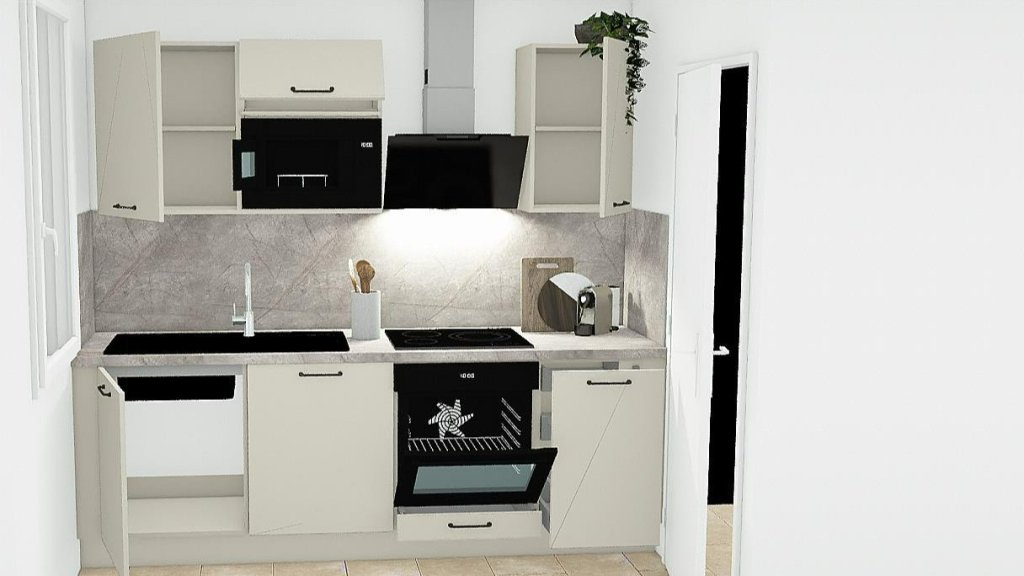 Des travaux d'installation d'une cuisine équipée sont en cours d'aménagement.