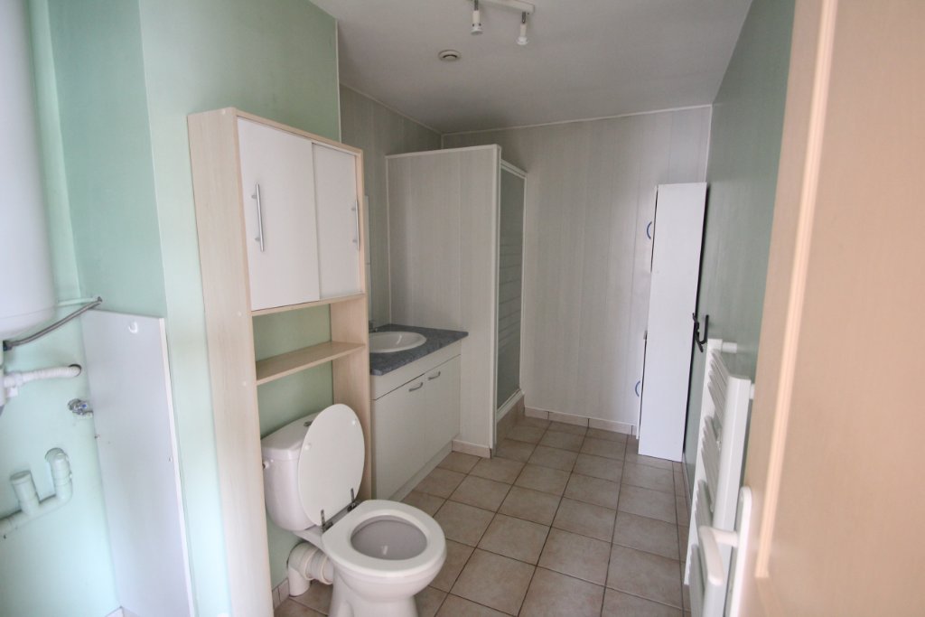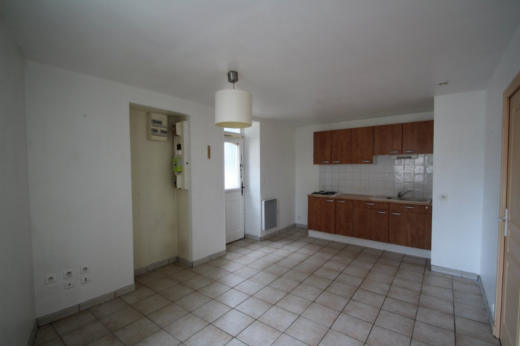 F2, au RDC, offrant cuisine meublée ouverte sur séjour, une chambre, salle d'eau avec WC.