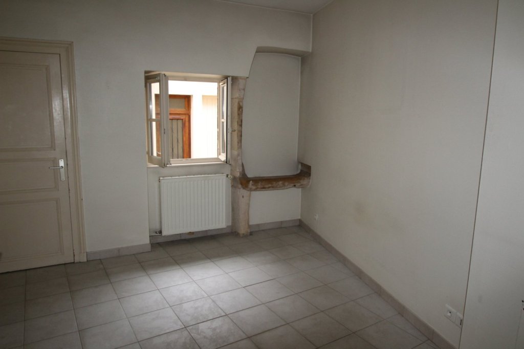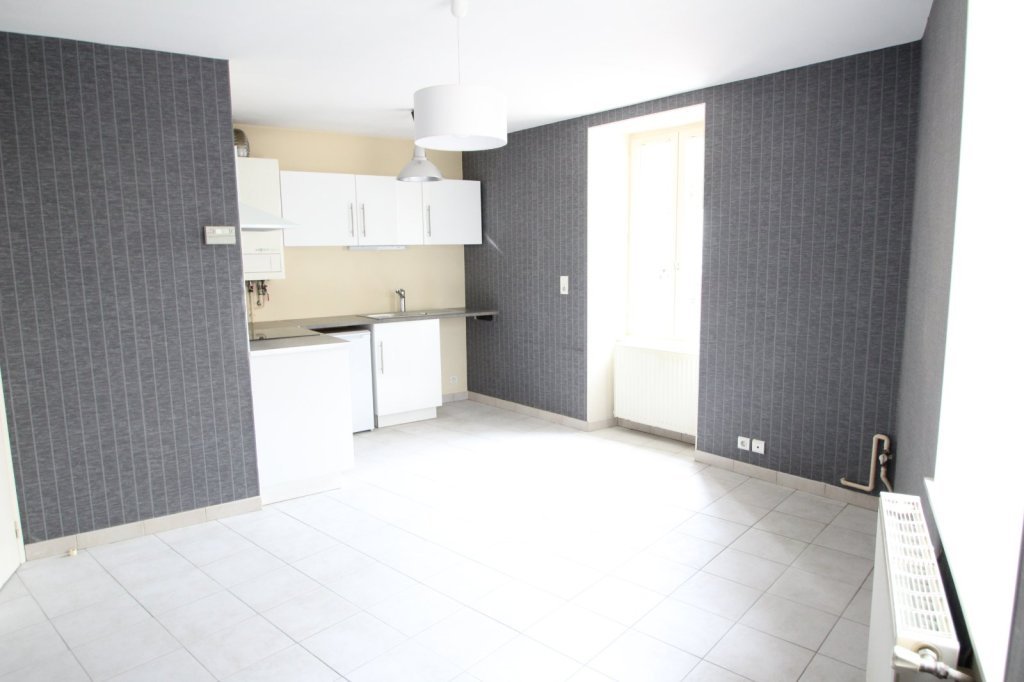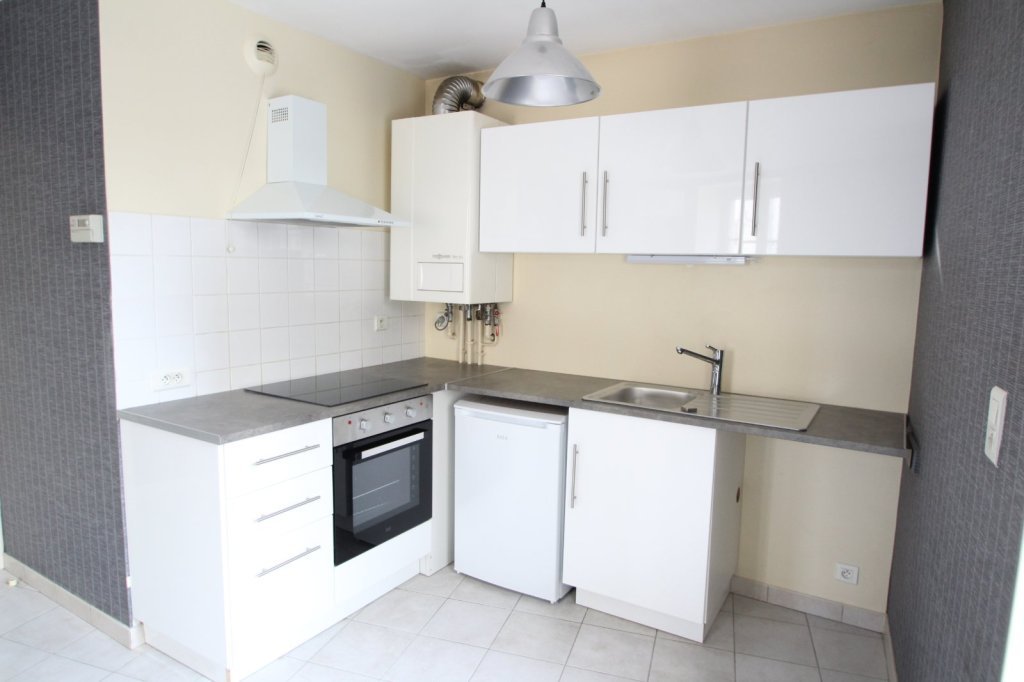 Appartement F2 disposant d'une cuisine meublée et équipée (frigo, plaque hotte et four) ouvert sur séjour, d'une chambre avec placard, d'une salle de bains (baignoire), d'un WC et d'une cave.