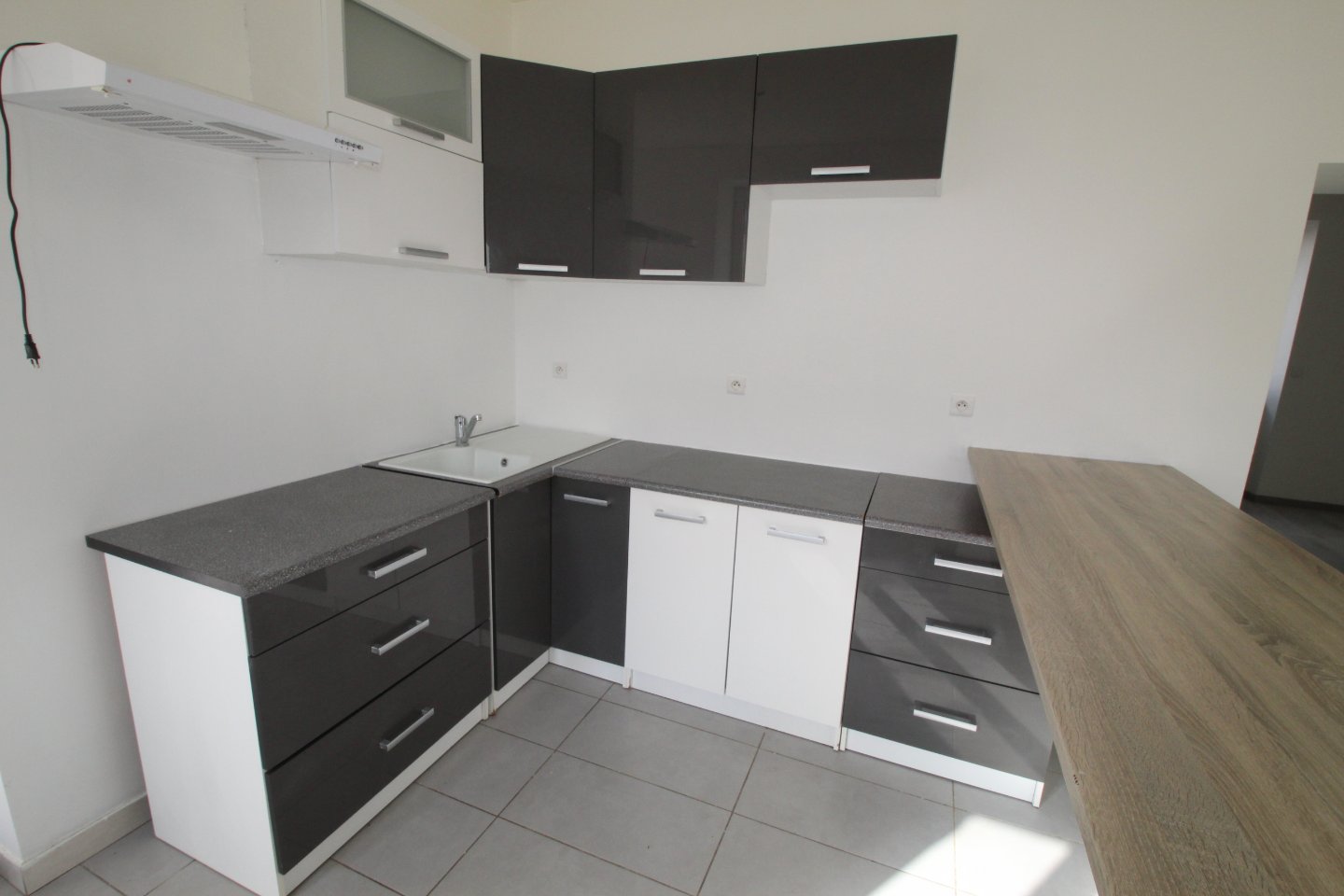 - Cuisine aménagée donnant sur salon,