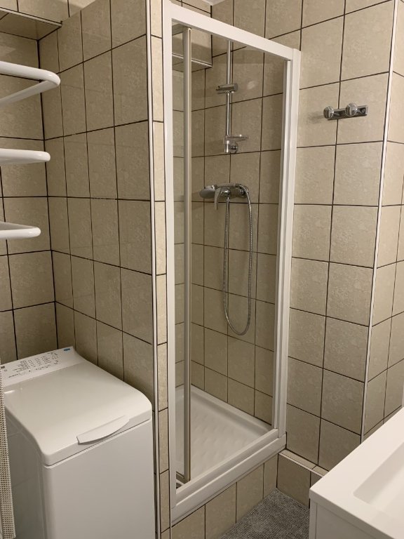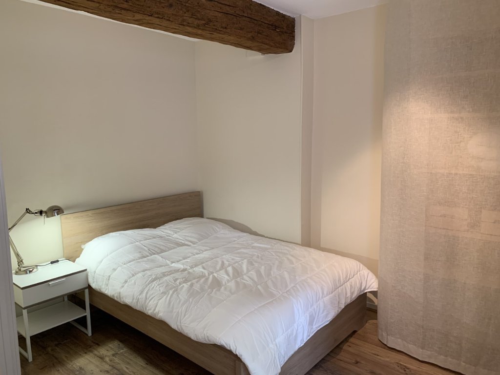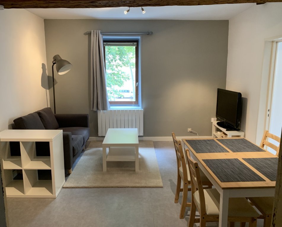 Une cuisine meublée et équipée ( plaque électrique, frigo, four)