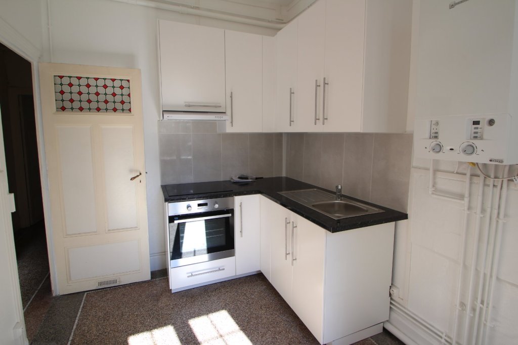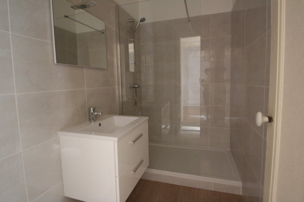 Agréable T2 de 48m2 dans bel immeuble, entièrement rénové comprenant hall d'entrée, séjour, cuisine aménagée et équipée, chambre, salle de bains, cave et grande dépendance en grenier.