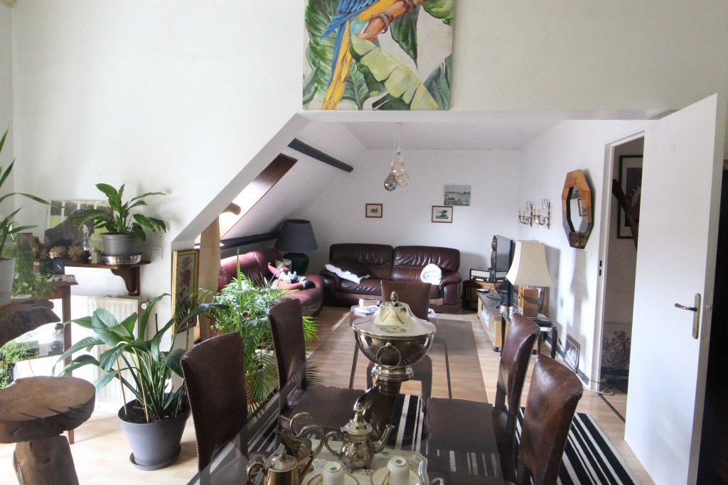 Cadre très agréable dans un écrin de verdure pour ce bel appartement comprenant: 1 entrée avec placard, 1 double couloir avec placards muraux, 1 wc, 1 cuisine équipée, 1 salon, 1séjour en continuité avec plafond cathédral, 1 dégagement coin nuit avec 1 placard mural, 1 salle d'eau, 1 chambre,