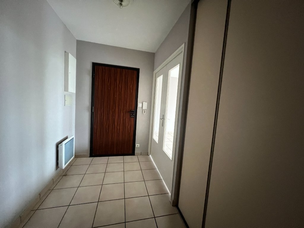 entrée avec placard, séjour et cuisine donnant sur balcon, 2 chambres dont une avec placard, salle de bains, WC séparés.